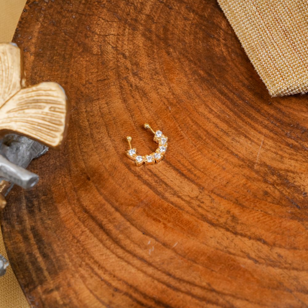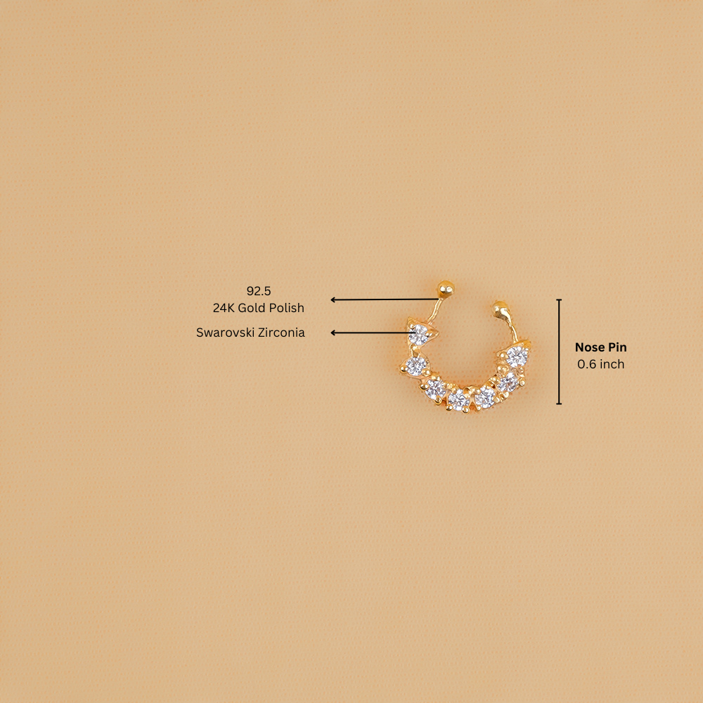 Step away from conventional accessorizing and make a statement with this stunning nose ring, crafted in 92.5 silver and adorned with radiant Swarovski Zirconia. Designed in an elegant bow shape, it exudes charm and sophistication, adding a playful yet refined touch to your look. Pair it with complementary tones for a seamless blend or contrast it boldly to create a mesmerizing effect—either way, prepare to captivate with effortless allure.