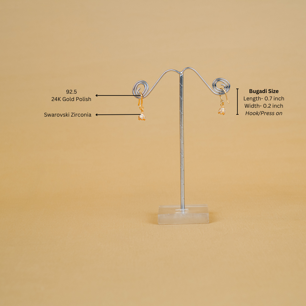 Your beauty is beyond measure, and to enhance your allure, elevate your style with these small yet classy pressing hook Bugadi. These Bugadi shine through in every piece, making them a timeless addition to your jewellery collection. Can be used by Kids as earrings .