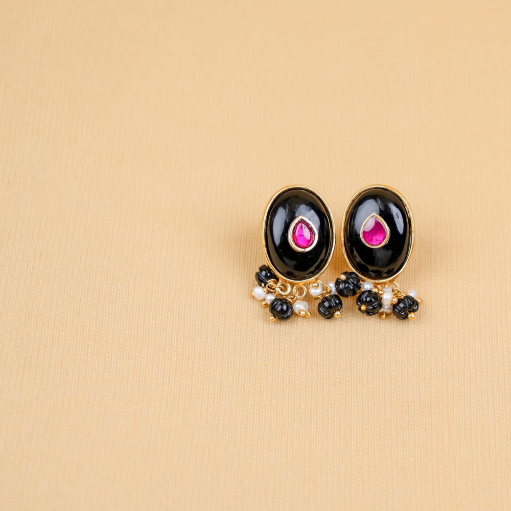 These earrings are adorned with the enchanting allure of black onyx, adding a delightful twist to classic styles. Enconscated in silver 92.5, you can wear this earring for any traditional ensemble or contemporary attire.