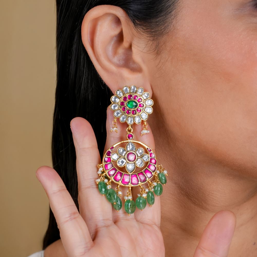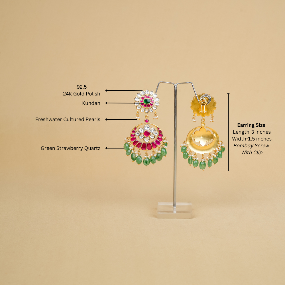 Stones: Kundan, Freshwater Cultured Pearl, Green Strawberry Quartz