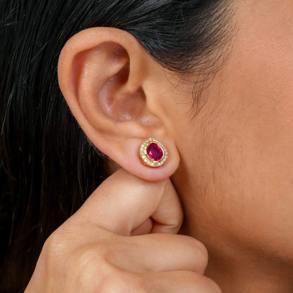 Bring these gorgeous hydro ruby studs to your jewellery collection and celebrate their colour and beauty. A perfect addition to any look you desire, these uneven -shaped gemstones and CZ are set in pure 92.5 silver and are handcrafted with care and love.