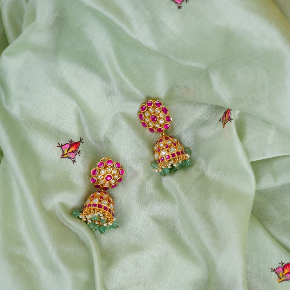 Kundan Jhumki Green Strawberry Quartz