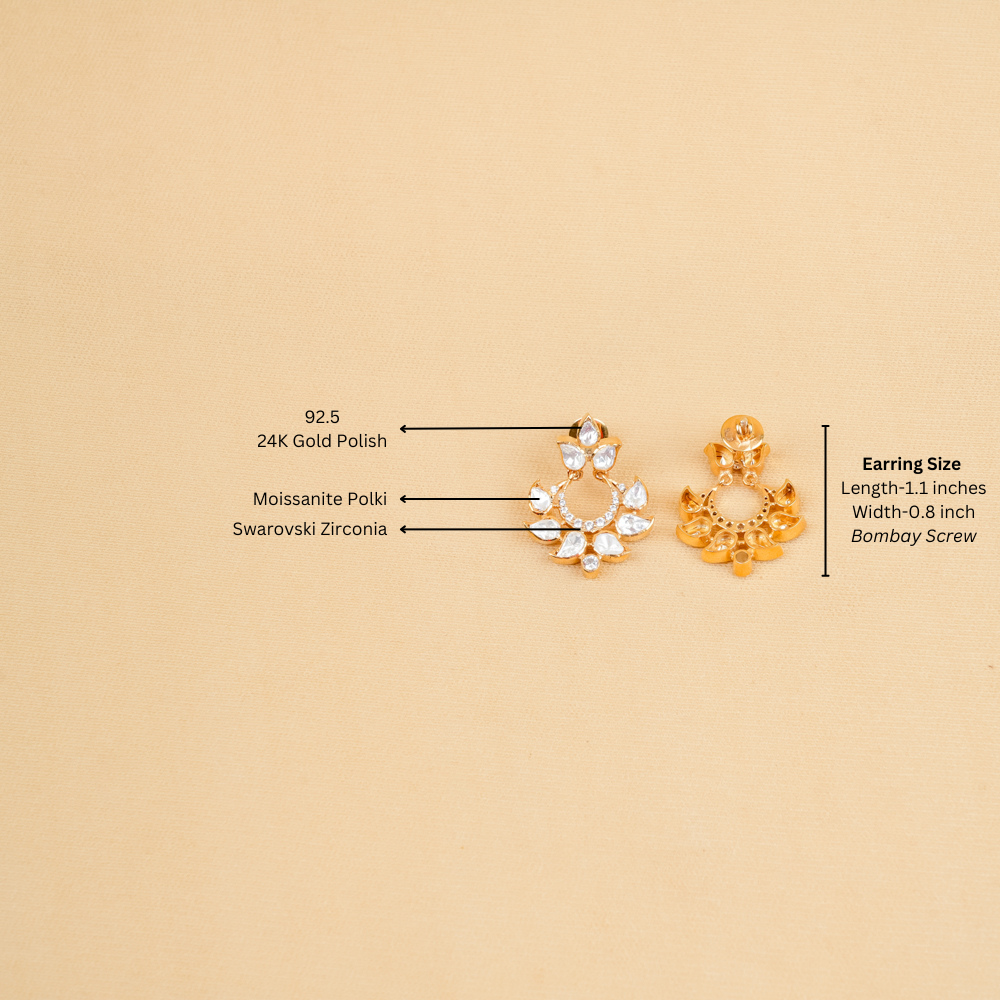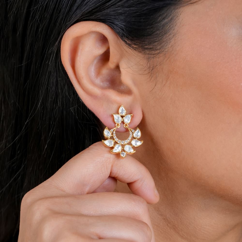 Introducing these exquisite chaandbalis, handcrafted from 92.5 silver and adorned with enchanting moissanite polki work and radiant Swarovski zirconia. Their charming elegance makes them a perfect accessory to elevate any outfit.