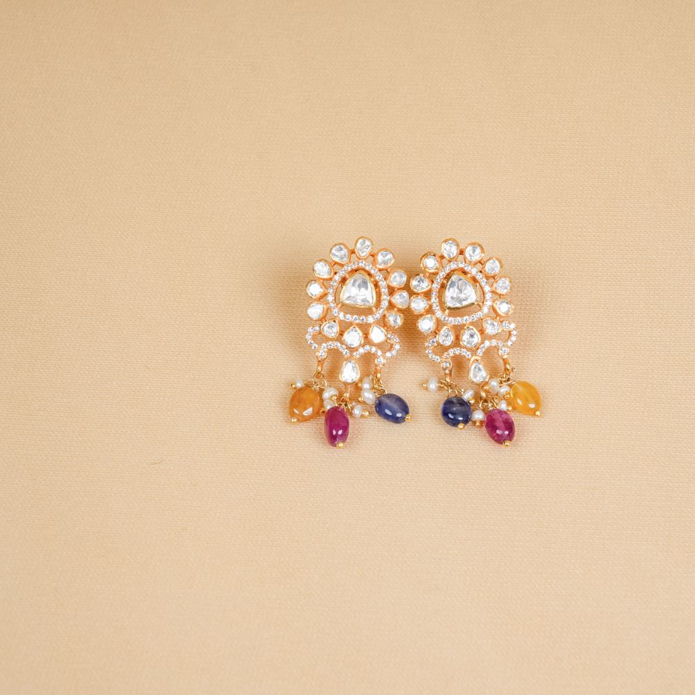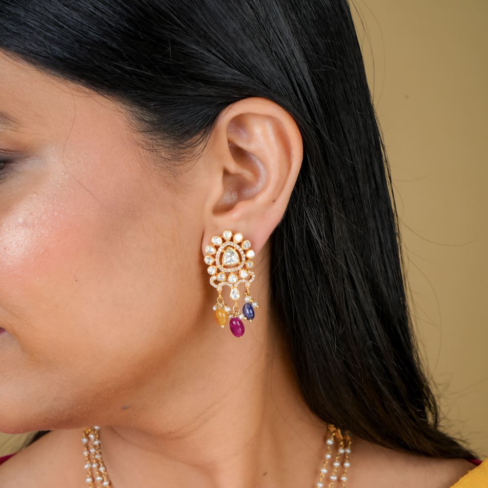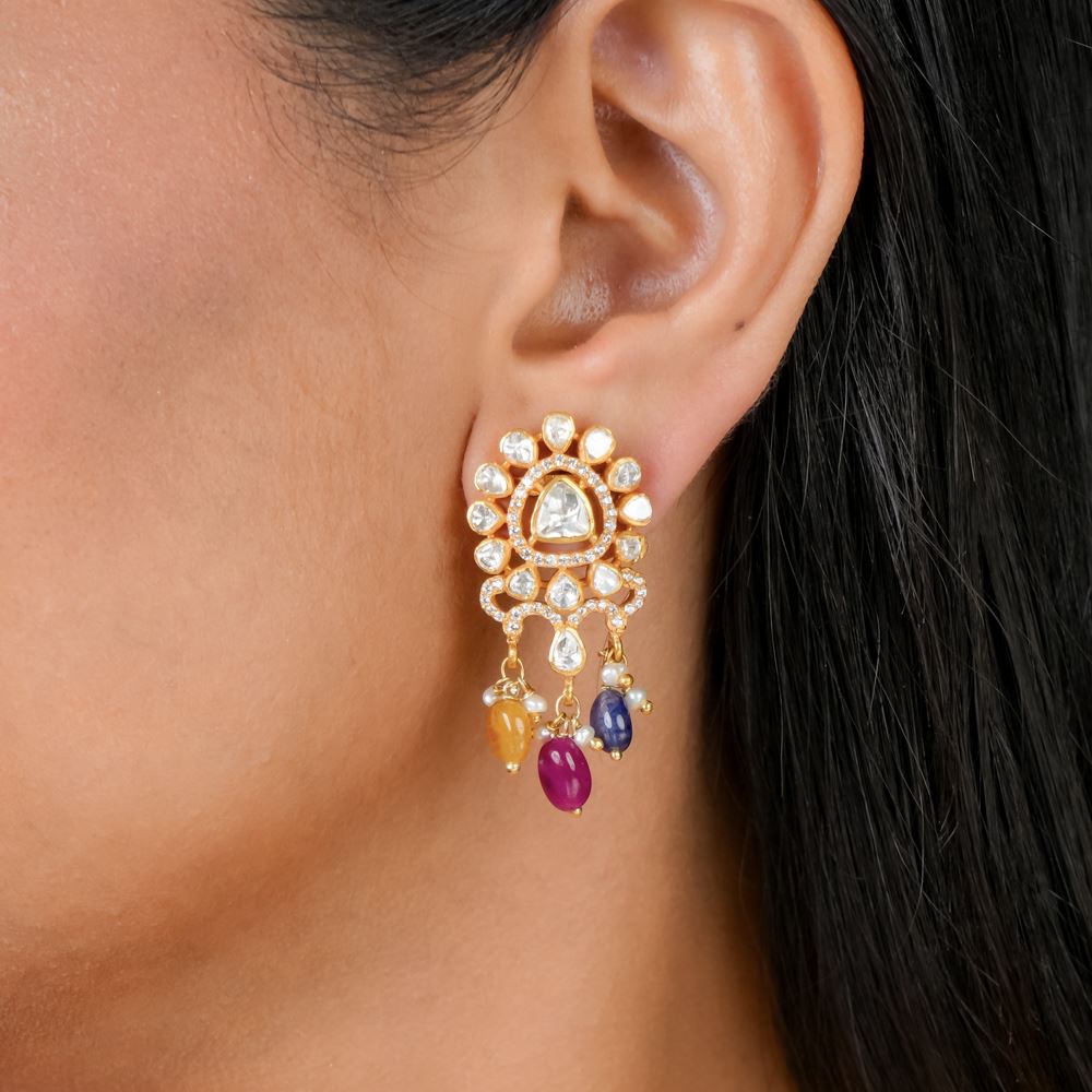 Moissanite Polki With Natural Stones Earrings