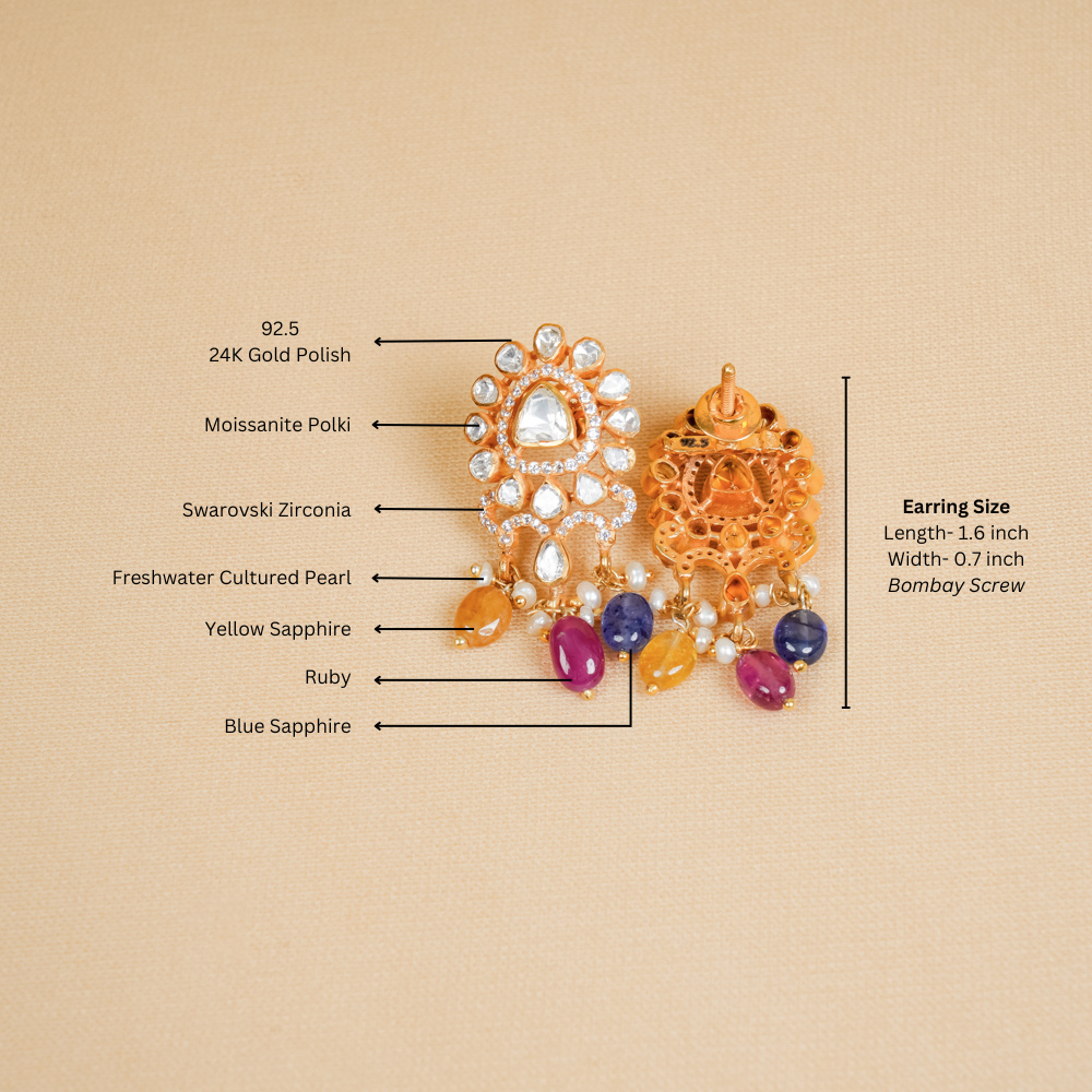 Stones: Yellow Sapphire, Blue Sapphire, Ruby, Moissanite Polki, Freshwater Cultured Pearls, Swarovski Zirconia