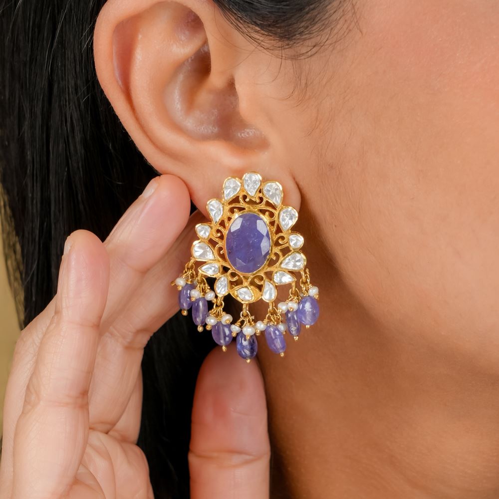 Moissanite Polki With Tanzanite Drops Earrings