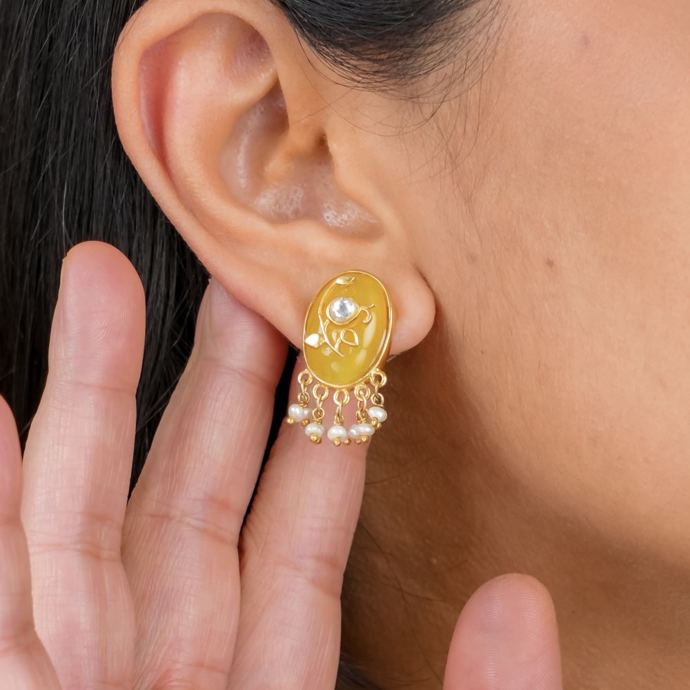 Straight from the vibrant heart of Jaipur, our colourful signature Jodhpur design earrings are here to brighten your smile and elevate your style. Their real charm truly unfolds when paired with any traditional outfit, adding a touch of elegance and cultural richness. Embrace the beauty and let your personality shine through!