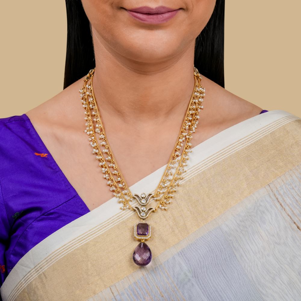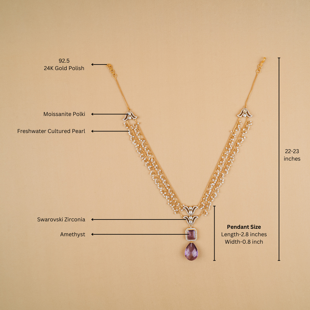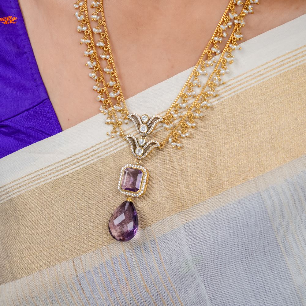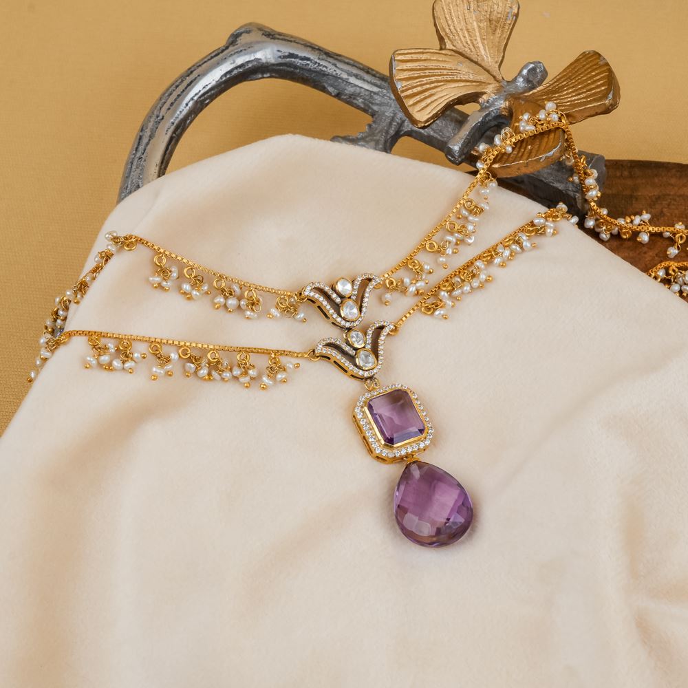 Stones: Moissanite Polki, Swarovski Zirconia, Amethyst, Freshwater Cultured Pearl