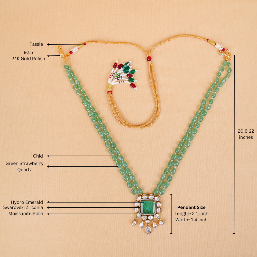 Stones: Moissanite Polki, Swarovski Zirconia, Hydro Emerald, Green Strawberry Quartz, Chid