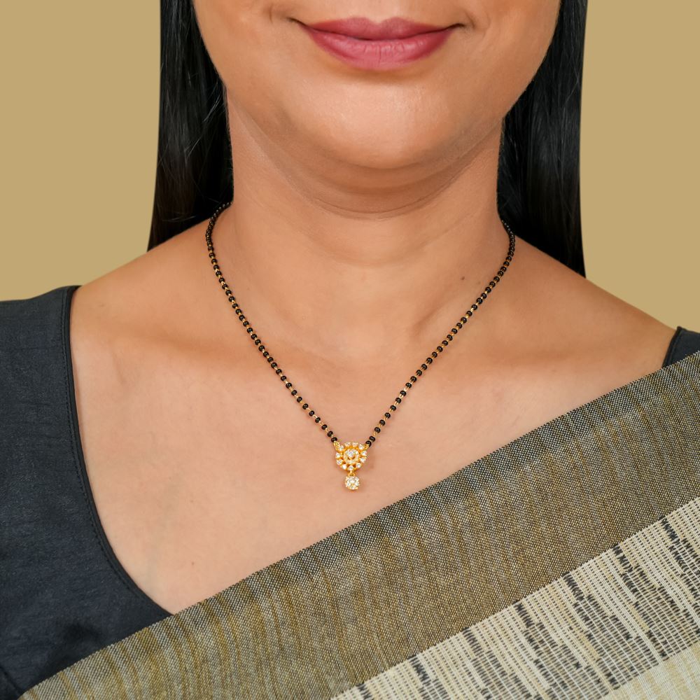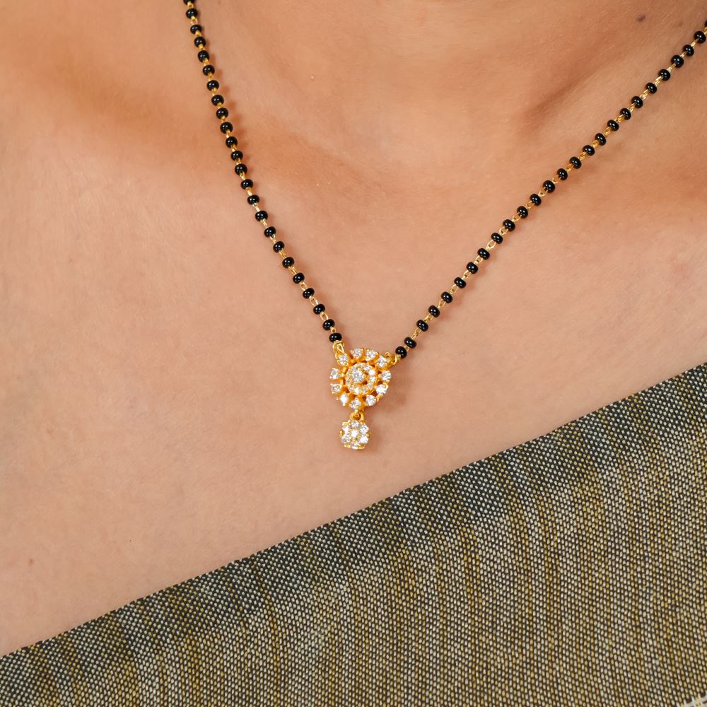 Black Bead Mangalsutra With Swarovski Zirconia Pendnat