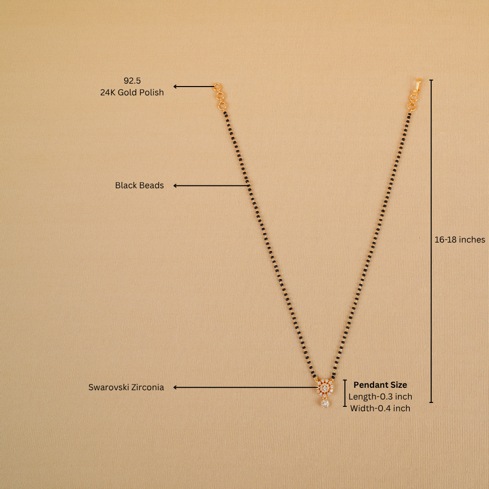 Introducing our black bead mangalsutra necklace, paired with a dazzling swarovski zirconia pendant. A perfect blend of tradition and modern sparkle it is ideal for weddings, festive looks, or elevating your everyday ethnic style.