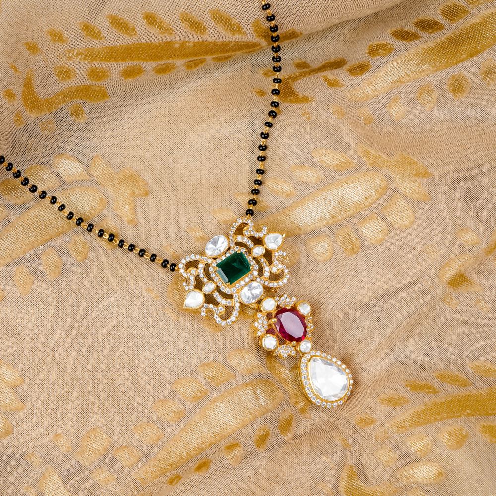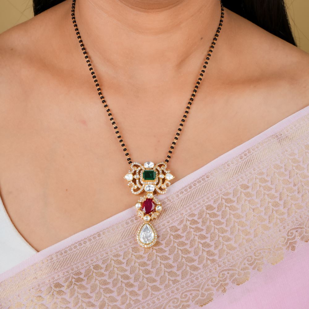 Stones: Hydro Emerald, Hydro Ruby, Black Beads, Moissanite Polki, Swarovski Zirconia