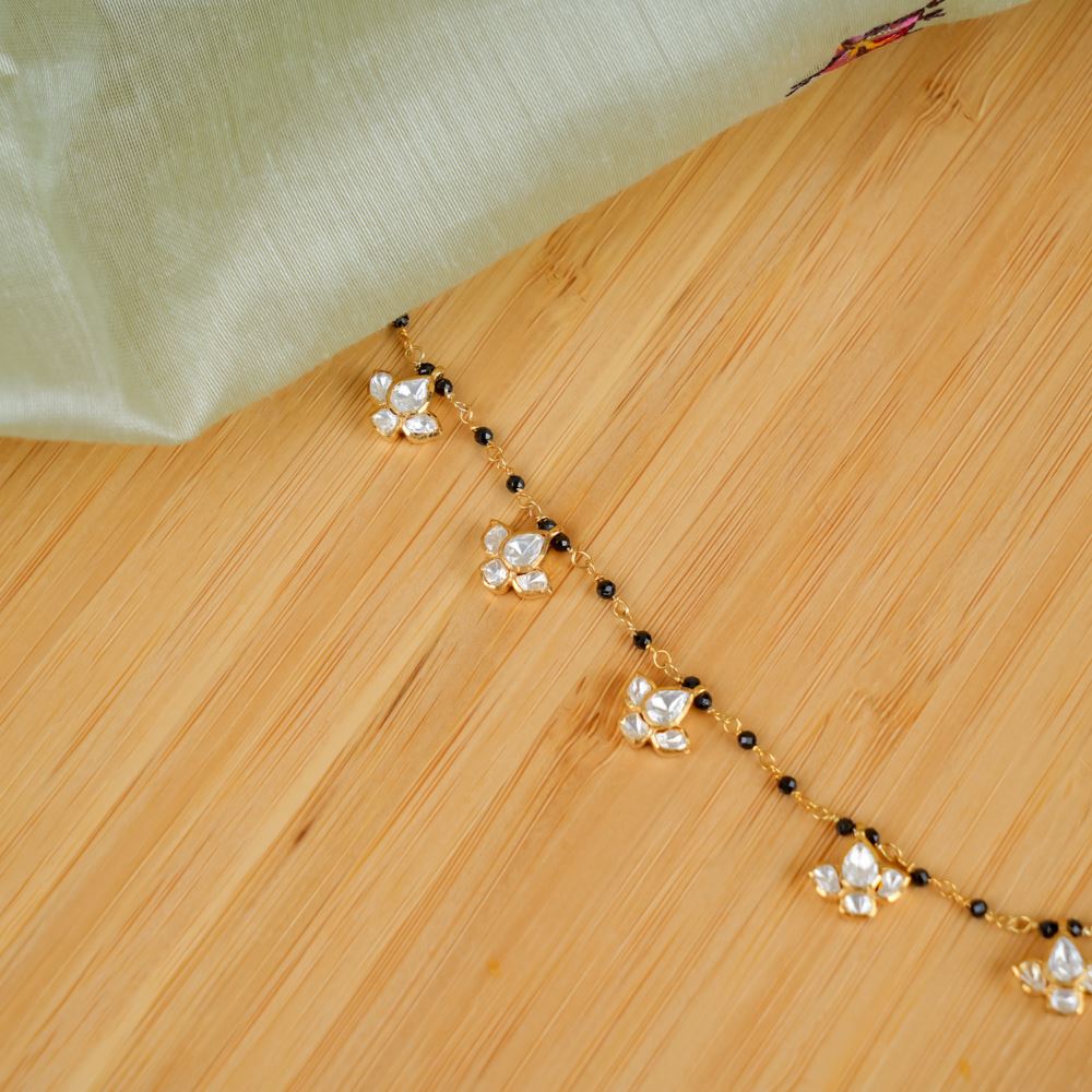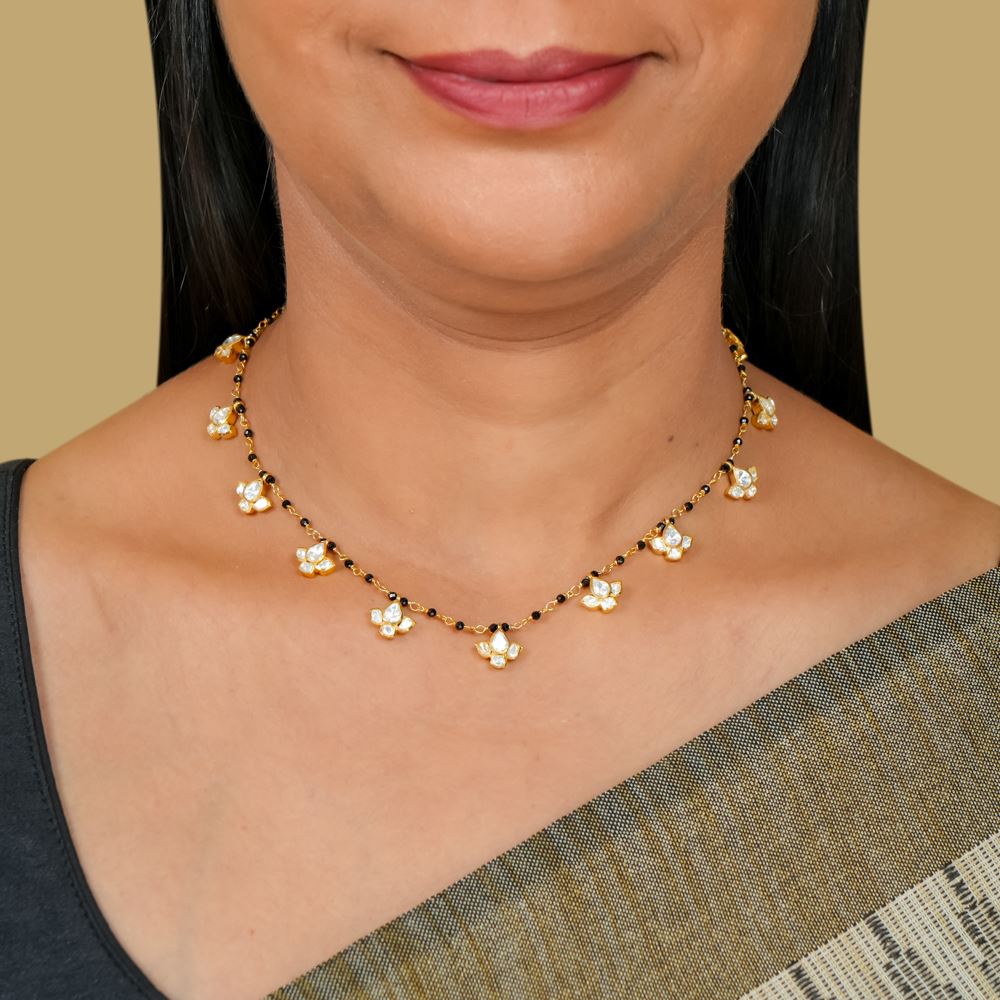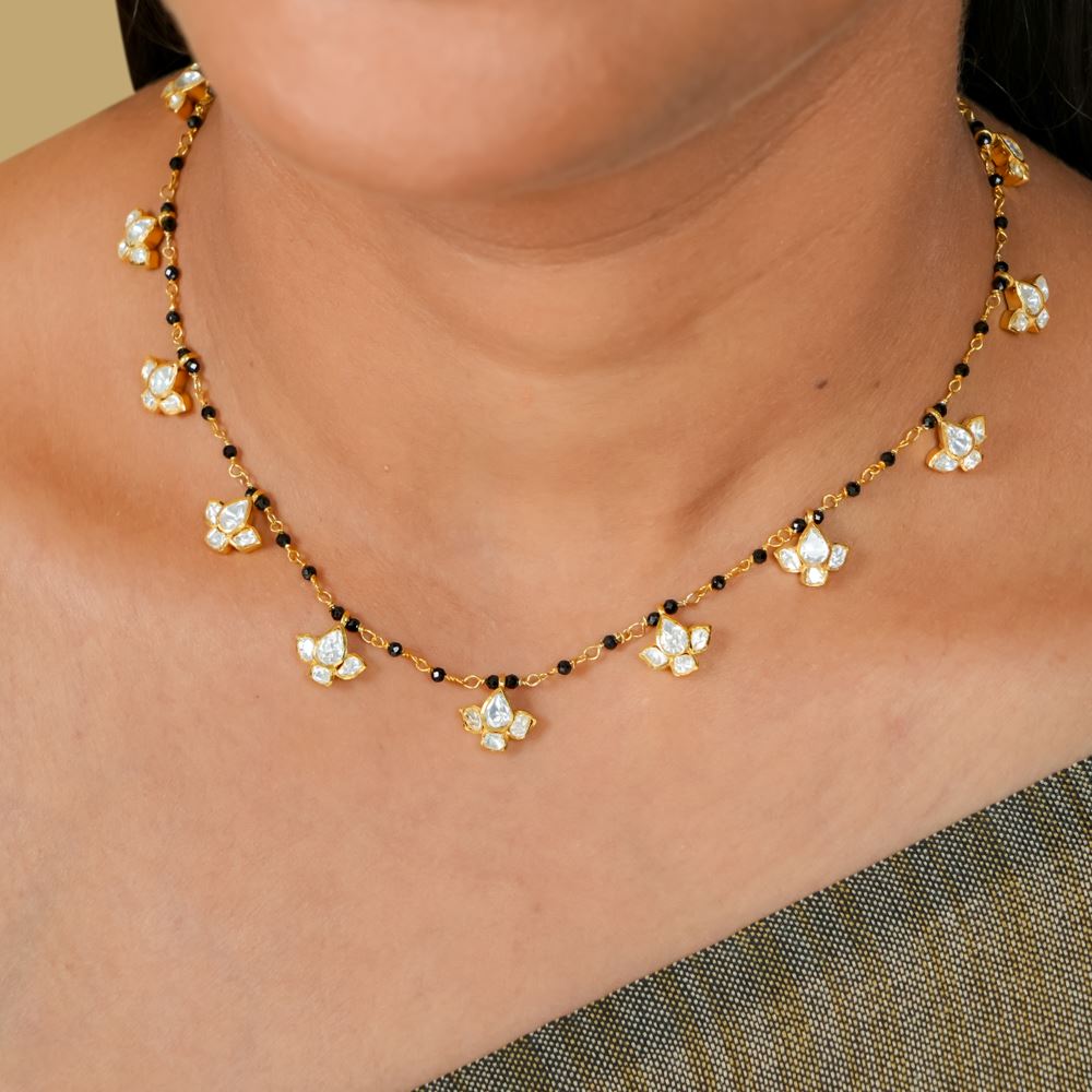 Black Spinel With Lotus Moissanite Polki Necklace