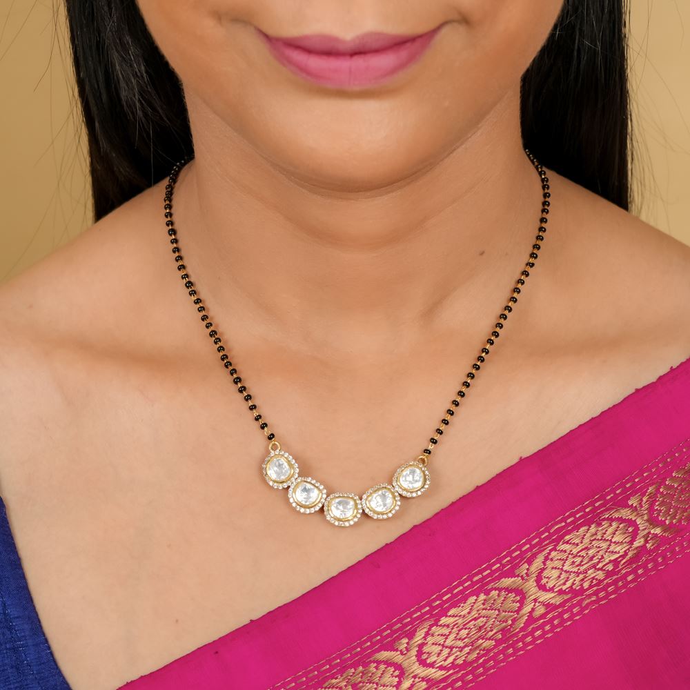 Graceful Black Beads With Moissanite Polki Pendant