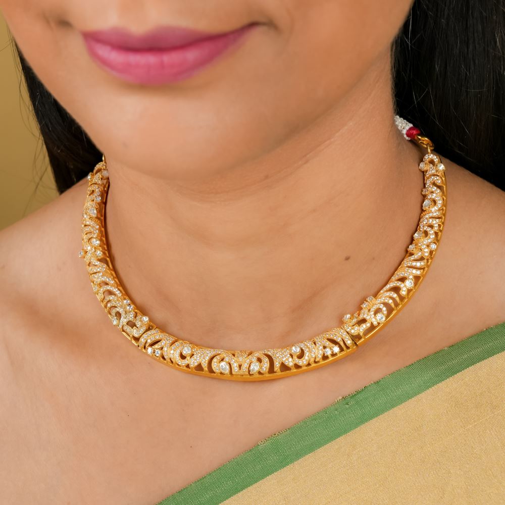 This choker redefines modern contemporary jewellery in an illuminating spirit. Designed to be worn during auspicious occasions, this exudes creativity and confidence.