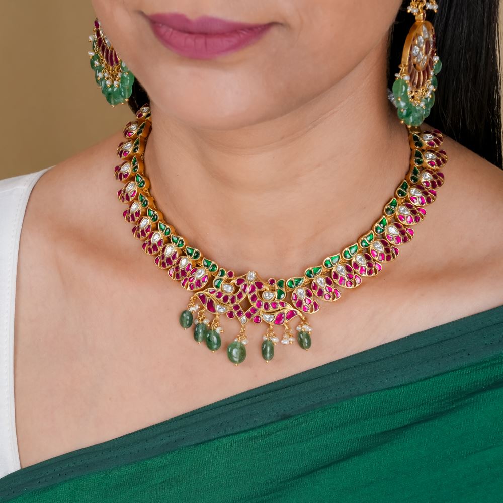 Kundan Mango Necklace With Peacock Motif