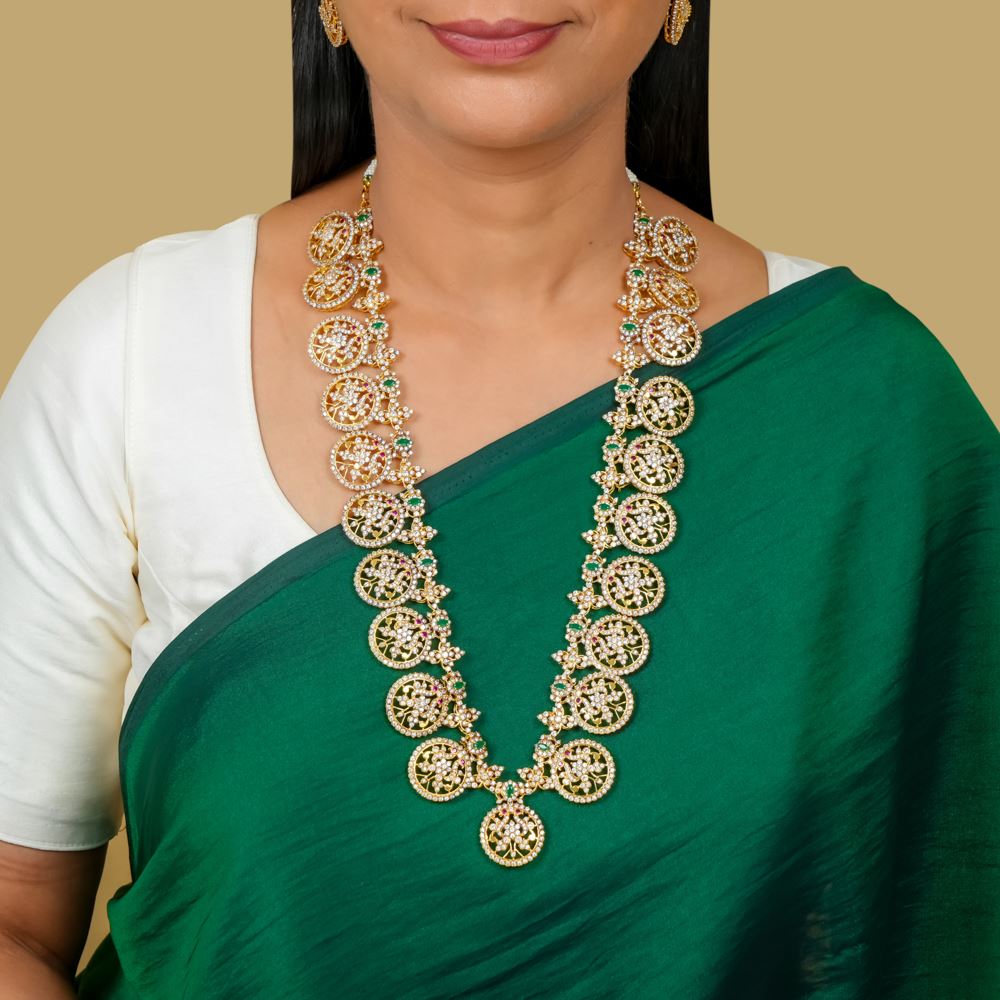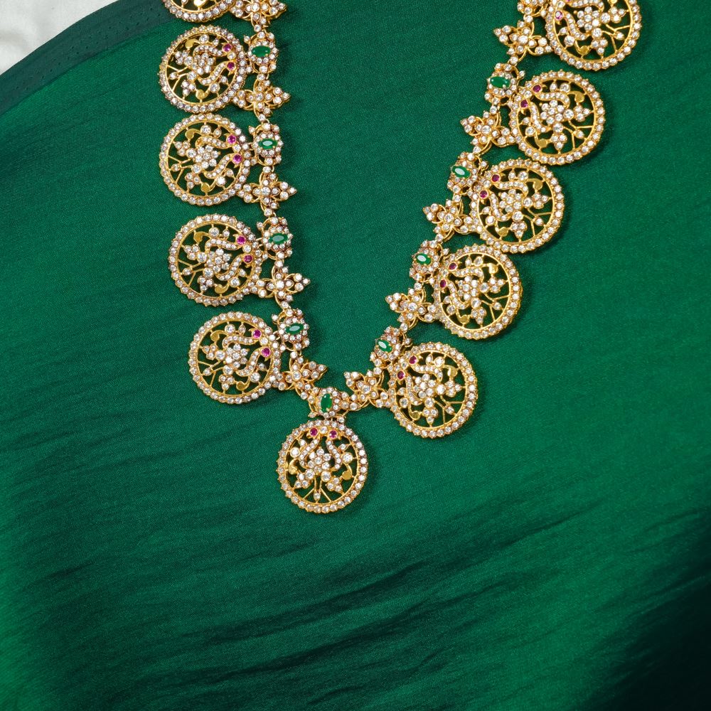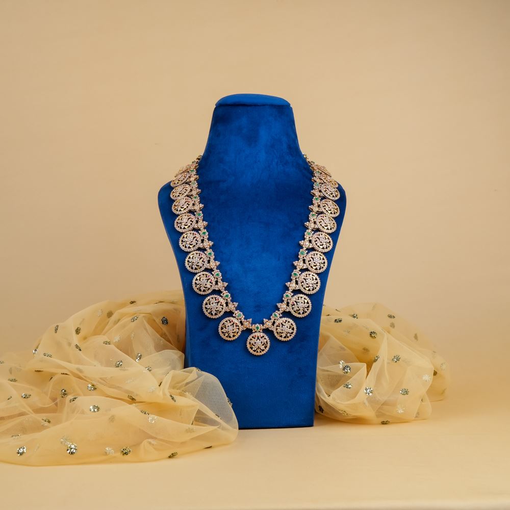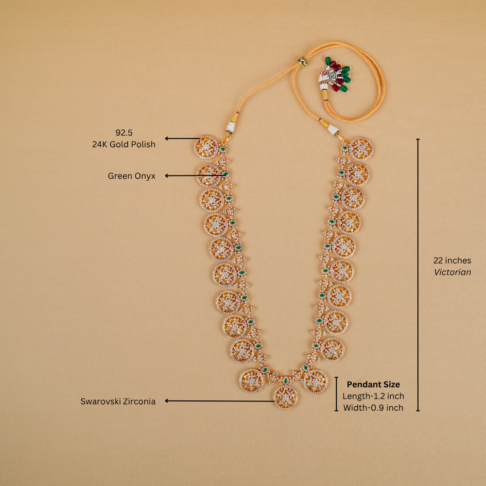 This stunning necklace (Bottu Mala) features radiant Swarovski Zirconia. Handcrafted in silver 92.5, this necklace is a captivating charm and the contemporary allure that will be treasured for generations.