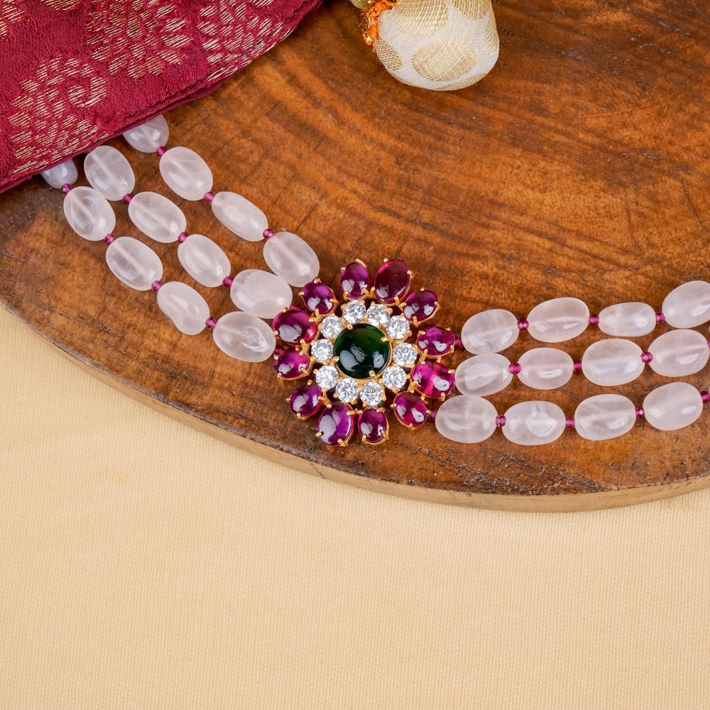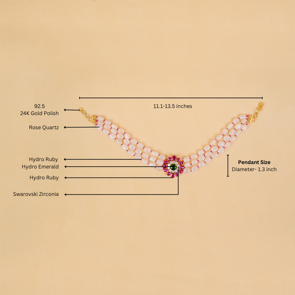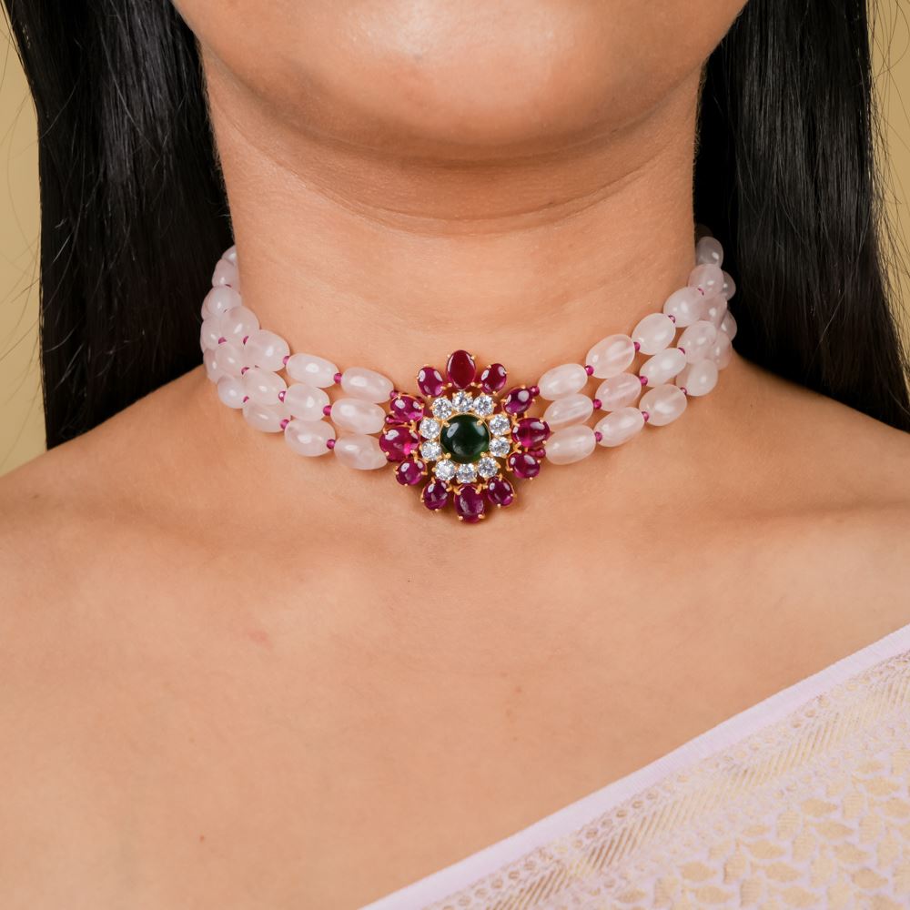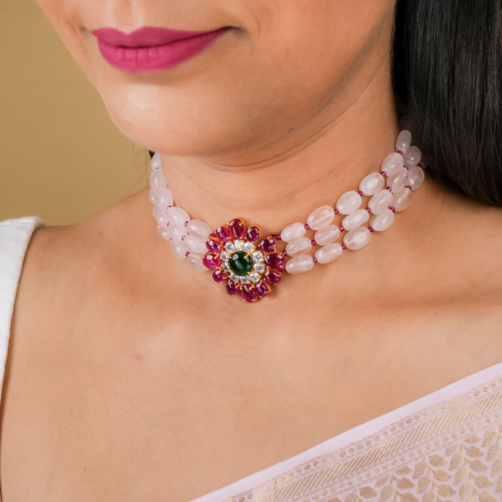 Rose Quartz Choker With Hydro Ruby Pendant