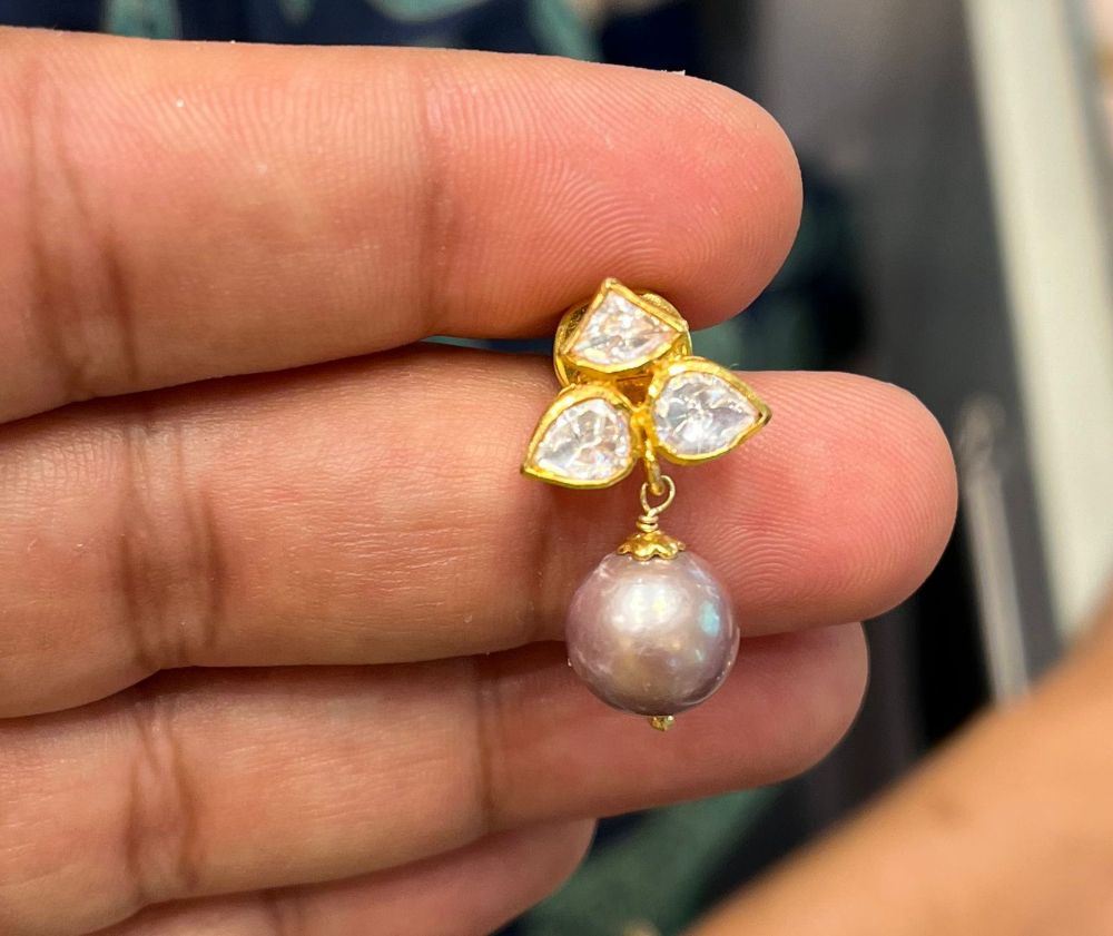 Stones: Moissanite Polki, Natural Pink Shaded Pearl