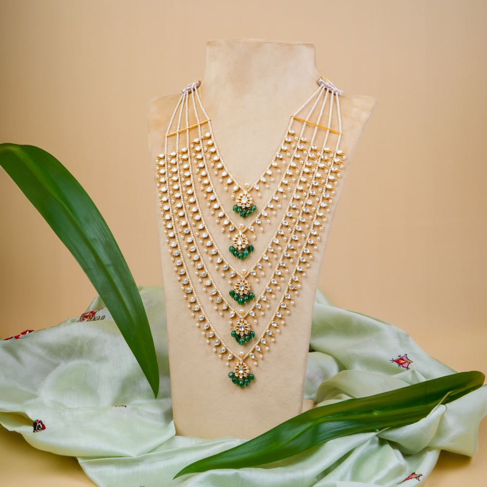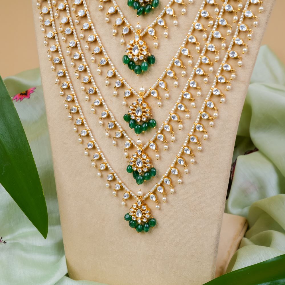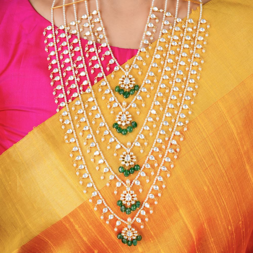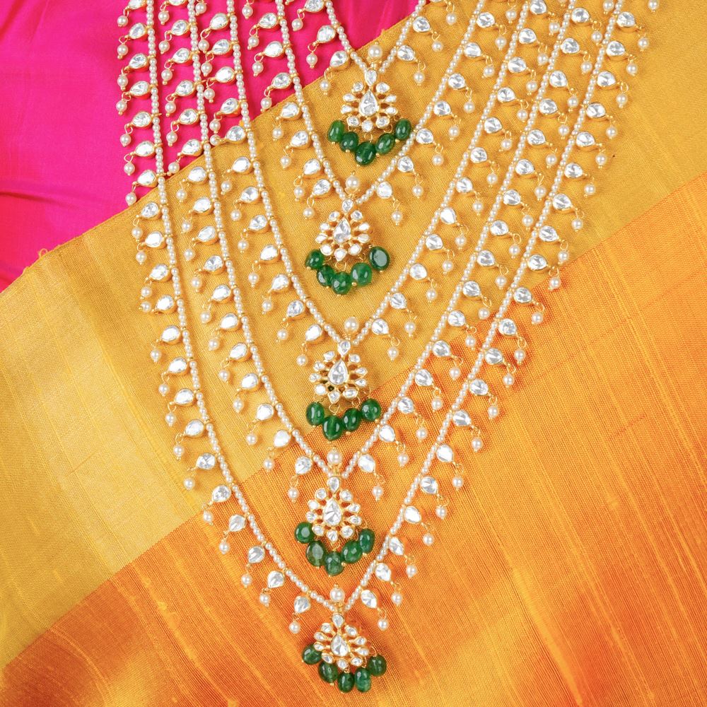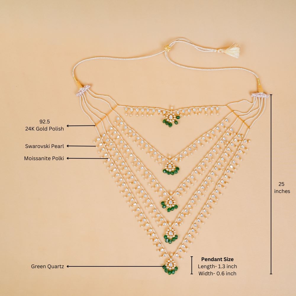 Stones: Natural Green Quartz, Moissanite Polki, Swarovski Pearl