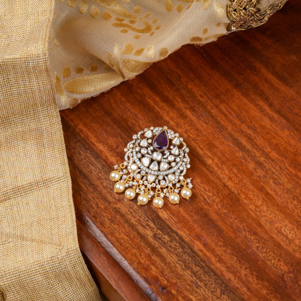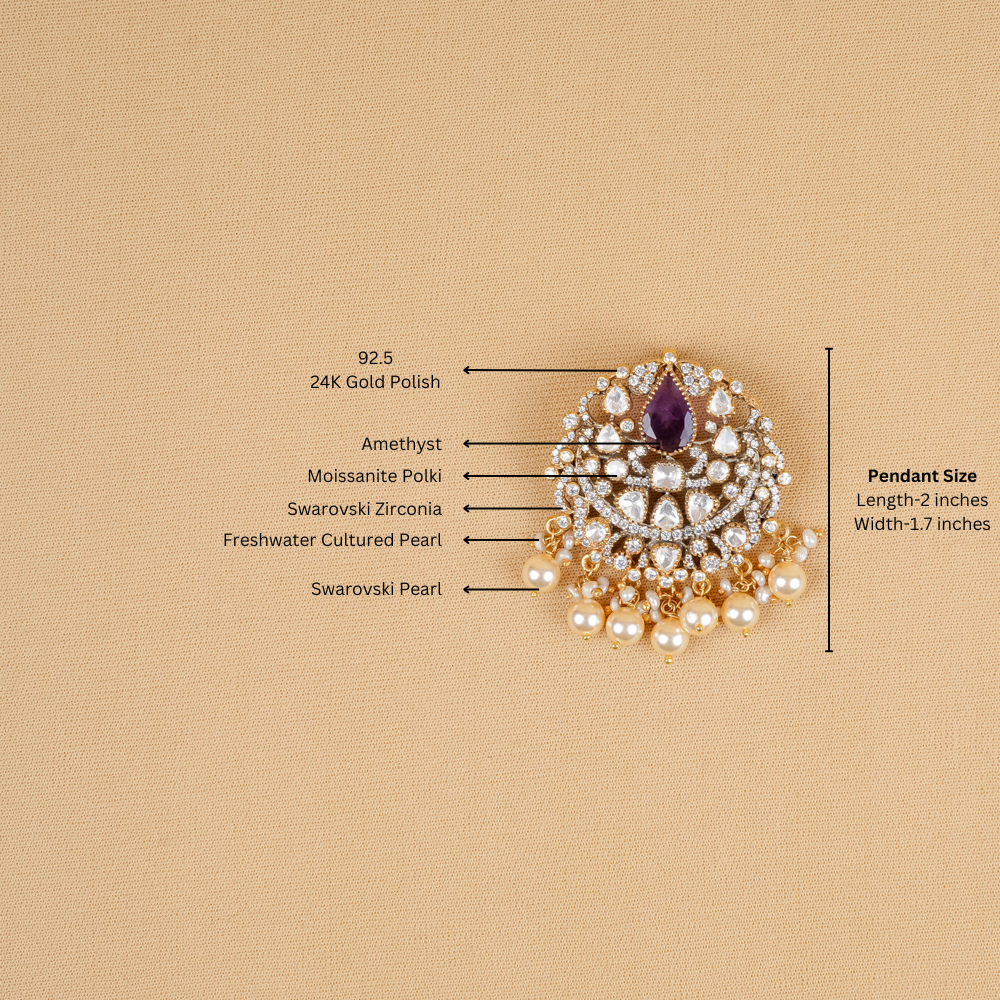 Stones: Amethyst, Moissanite Polki, Swarovski Zirconia, Swarovski Pearl, Freshwater Cultured Pearl