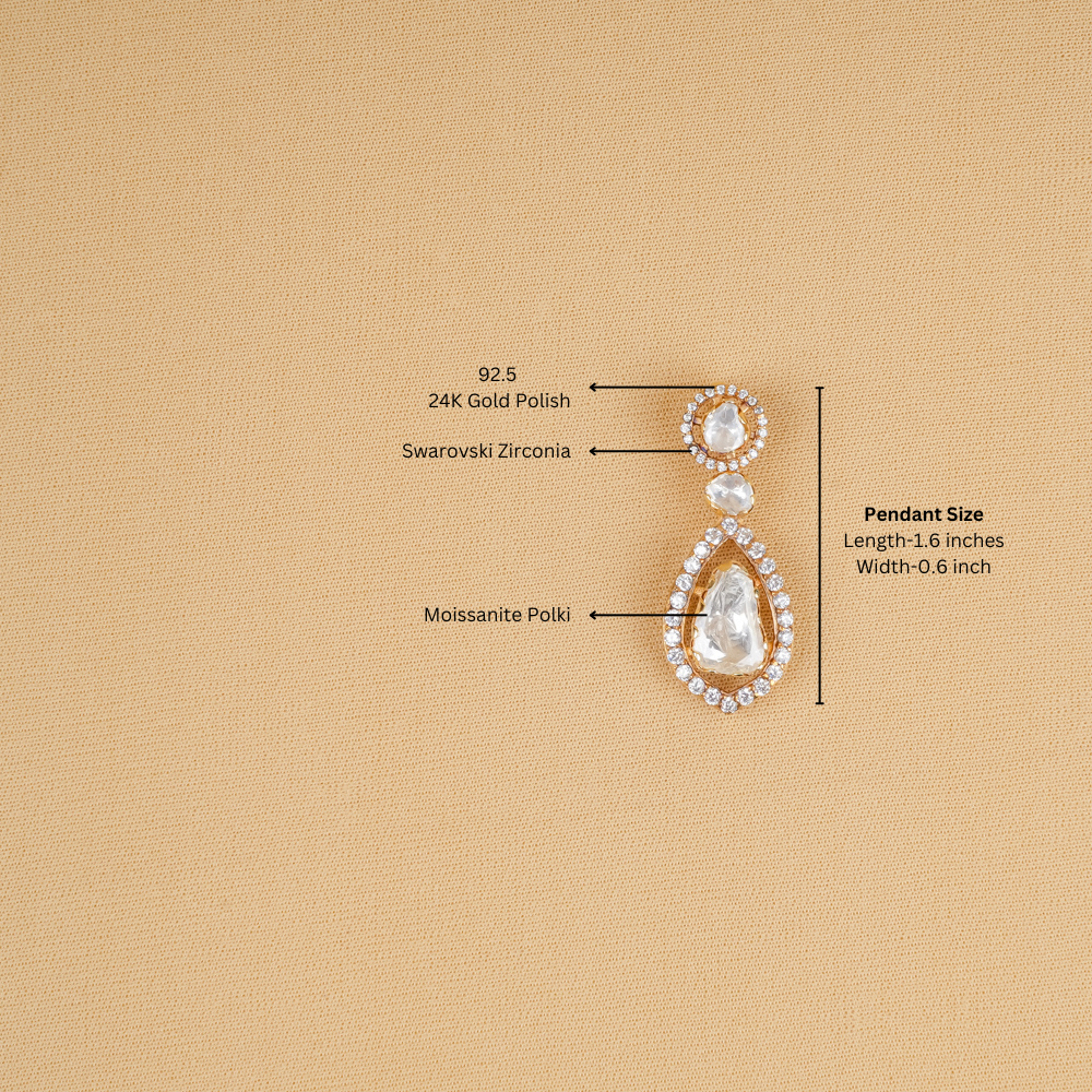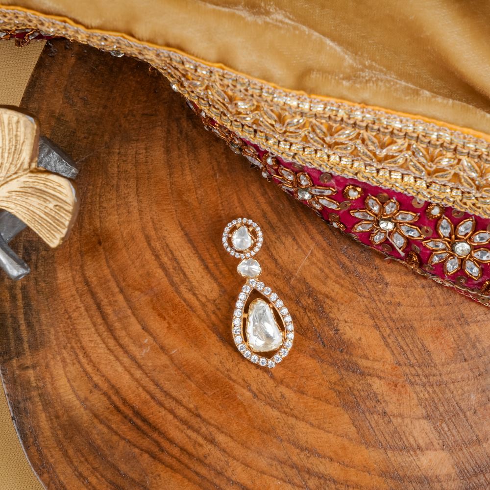 Whether you're dressing up for a special occasion or simply adding a touch of glamour, it is the perfect accessory. Its timeless design featuring moissanite polki and Swarovski zirconia ensures it will remain a cherished piece in your jewellery collection.