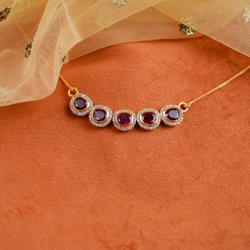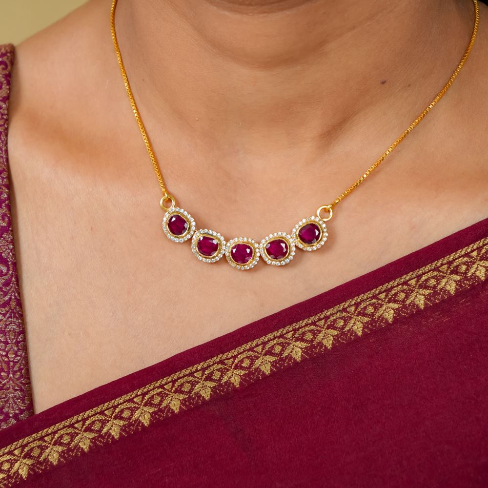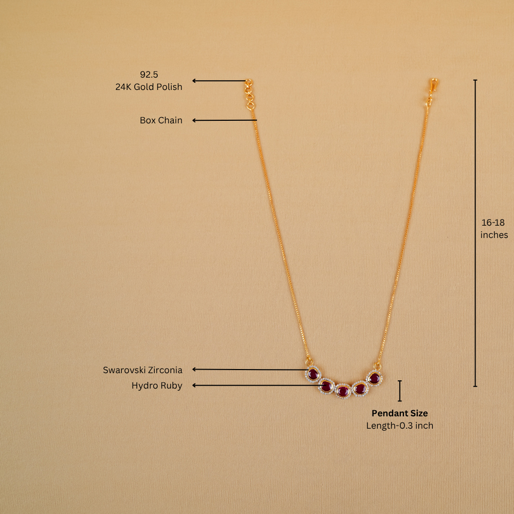 Delicate and vibrant, the Minimal Hydro Ruby Charm Necklace is a prefect accessory you're looking for your friends and family gathering. Set in silver 92.5 the melange of subtle scarlet and Swarovski Zirconia adds depth to your ensemble.