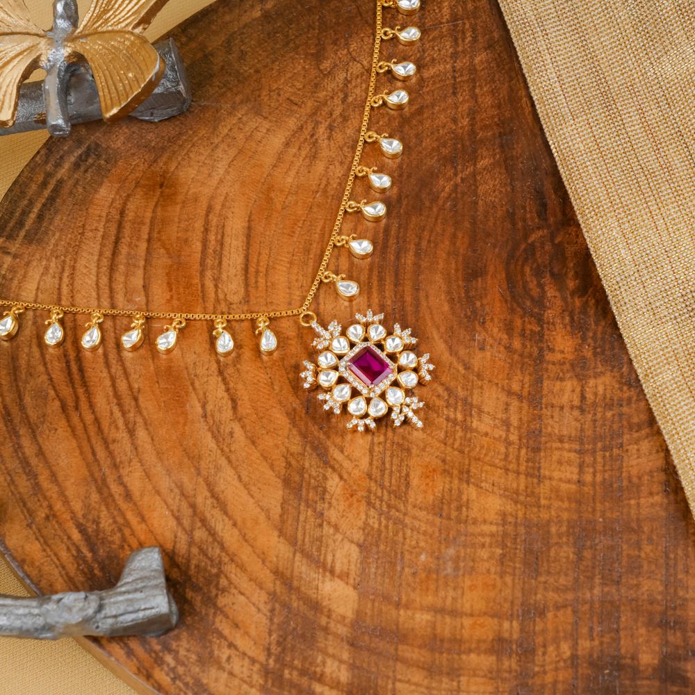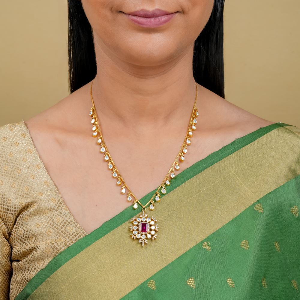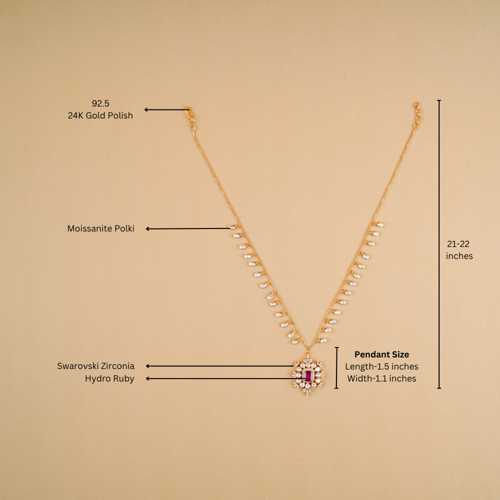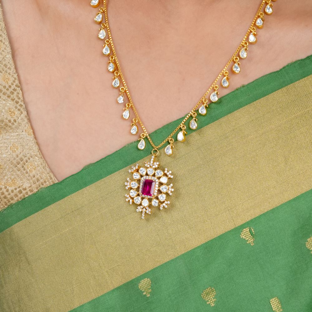 Moissanite Polki With Hydro Ruby Pendant Necklace