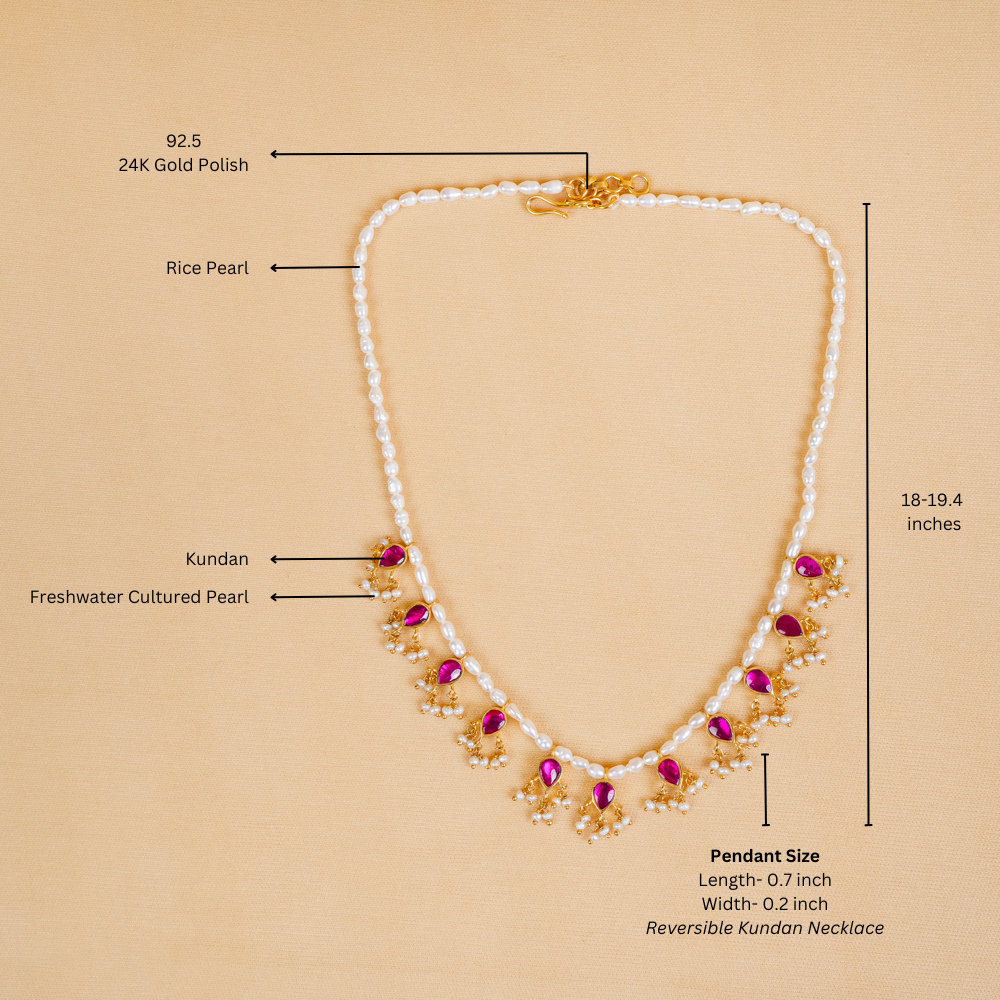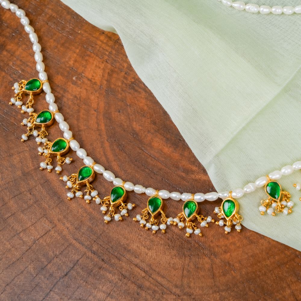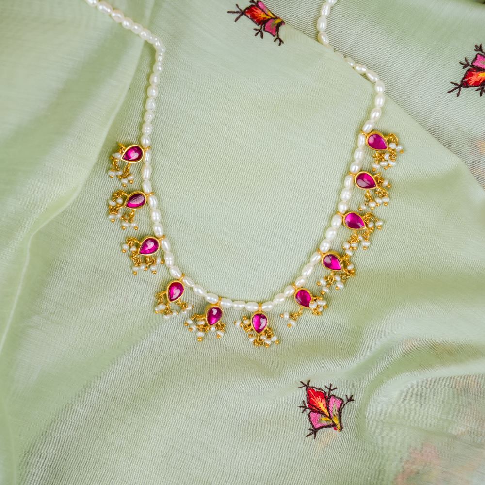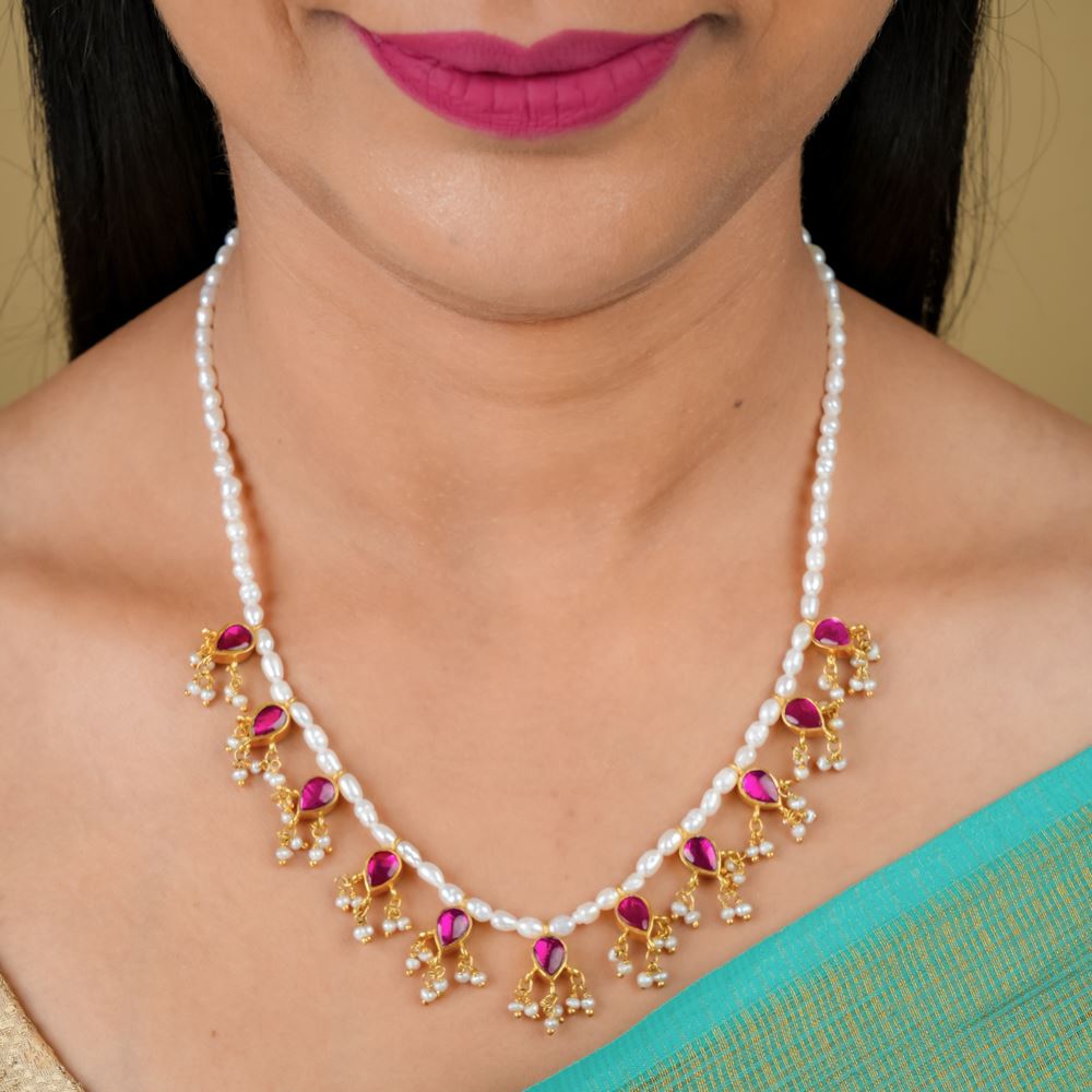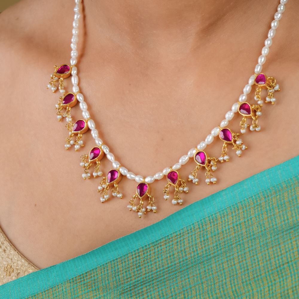 Stones: Rice pearls, Freshwater cultured pearls, Kundan