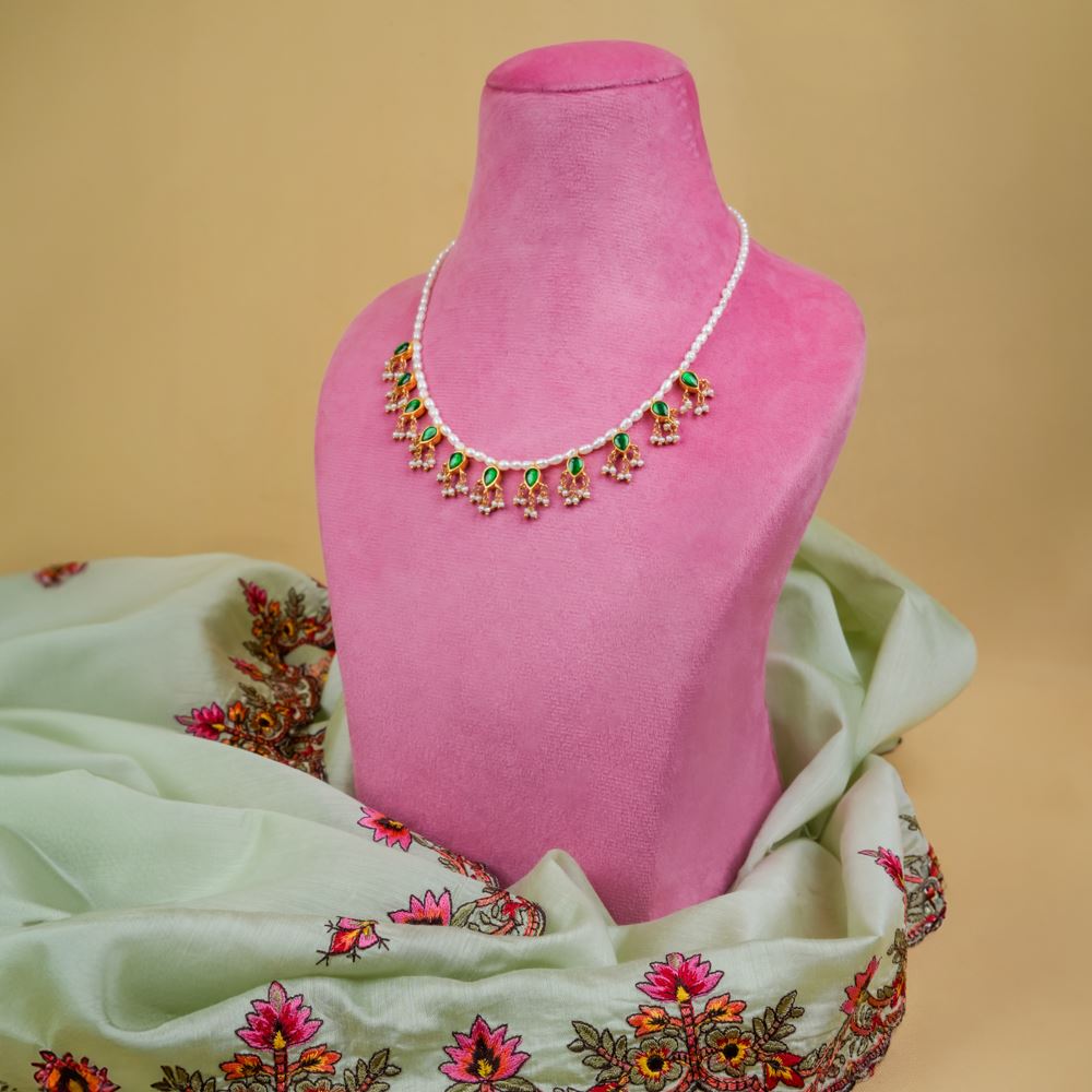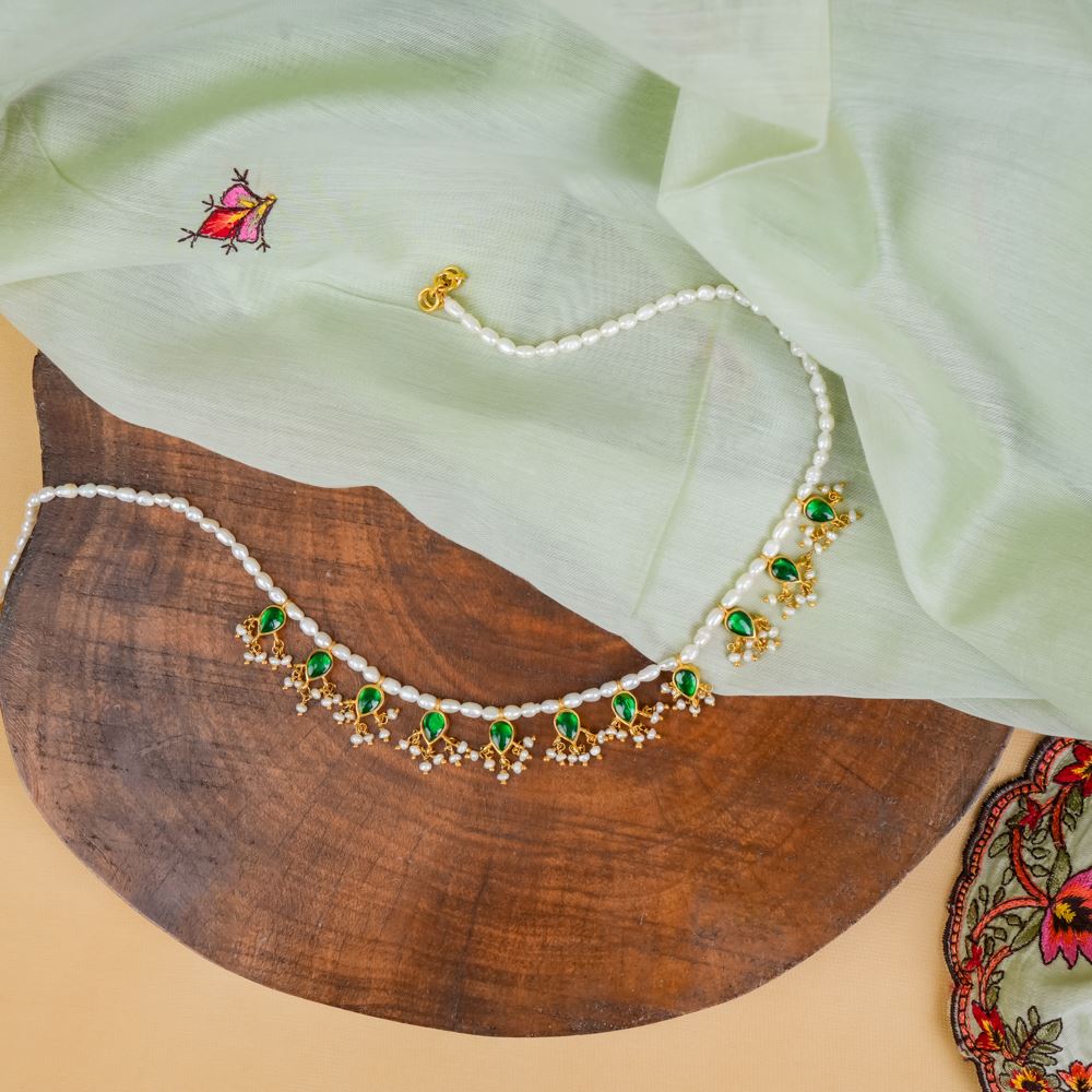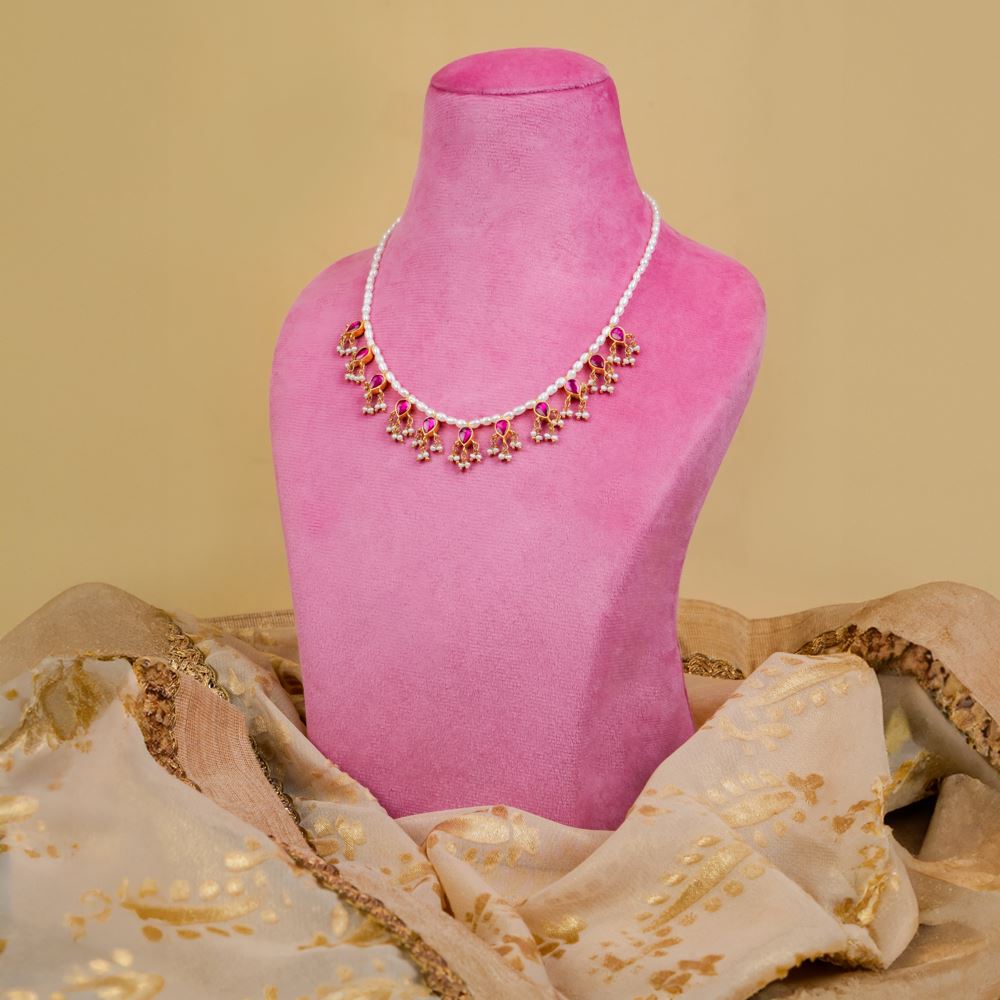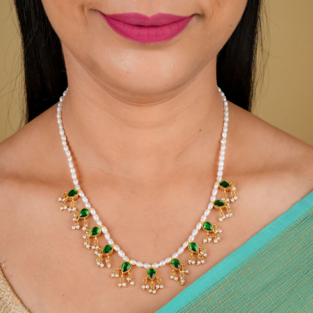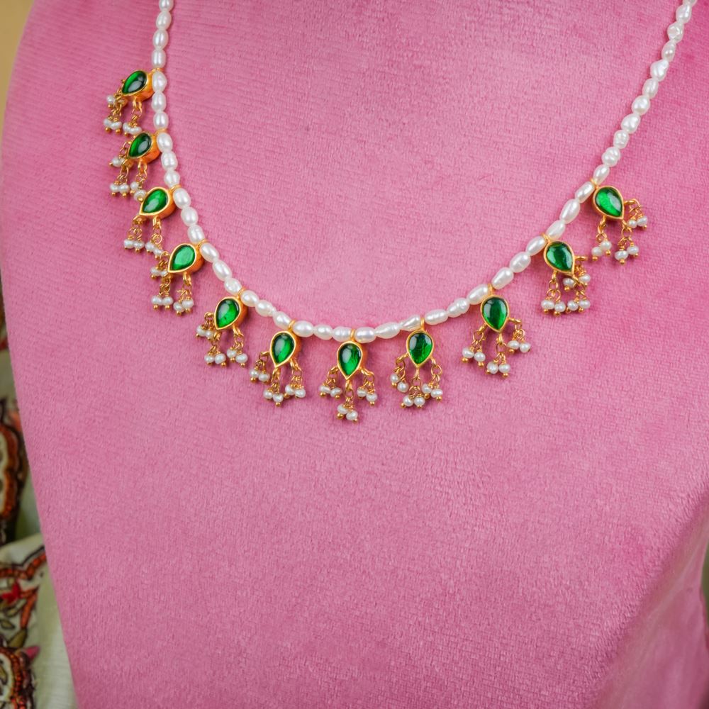 Stones: Rice pearls, Freshwater cultured pearls, Kundan