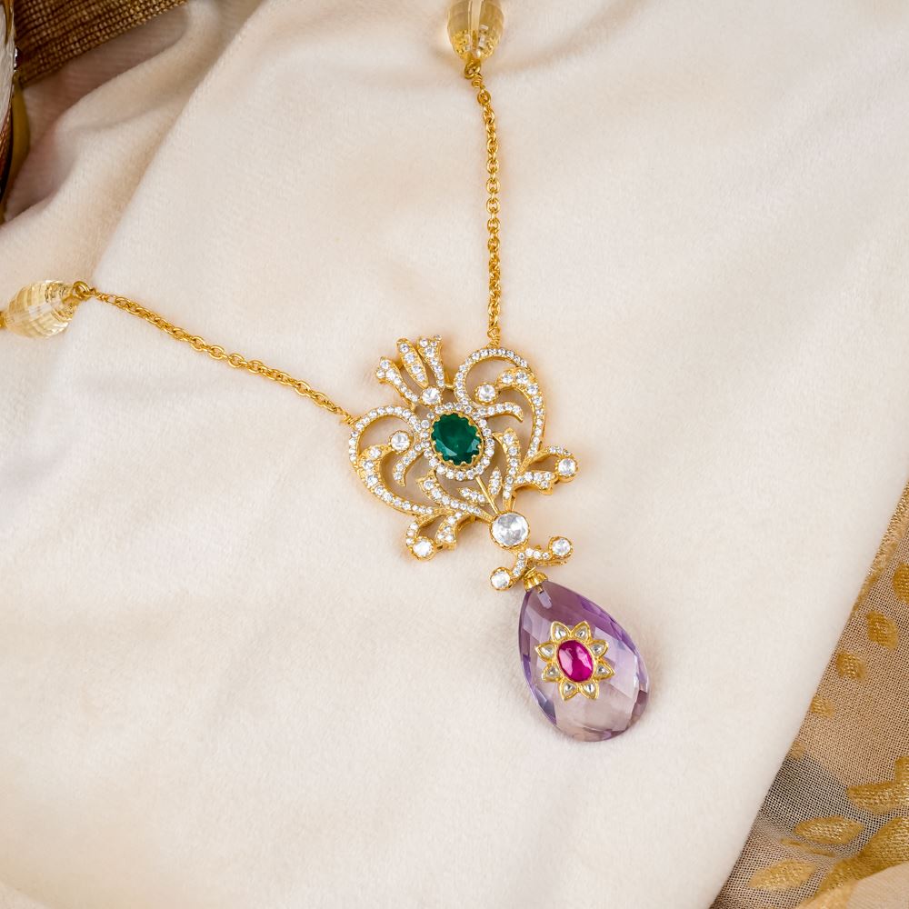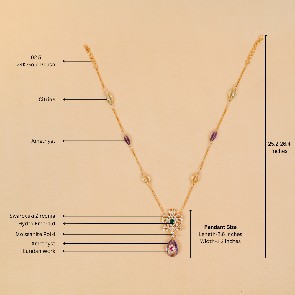Stones: Hydro Emerald, Amethyst, Citrine, Moissanite Polki, Swarovski Zirconia
