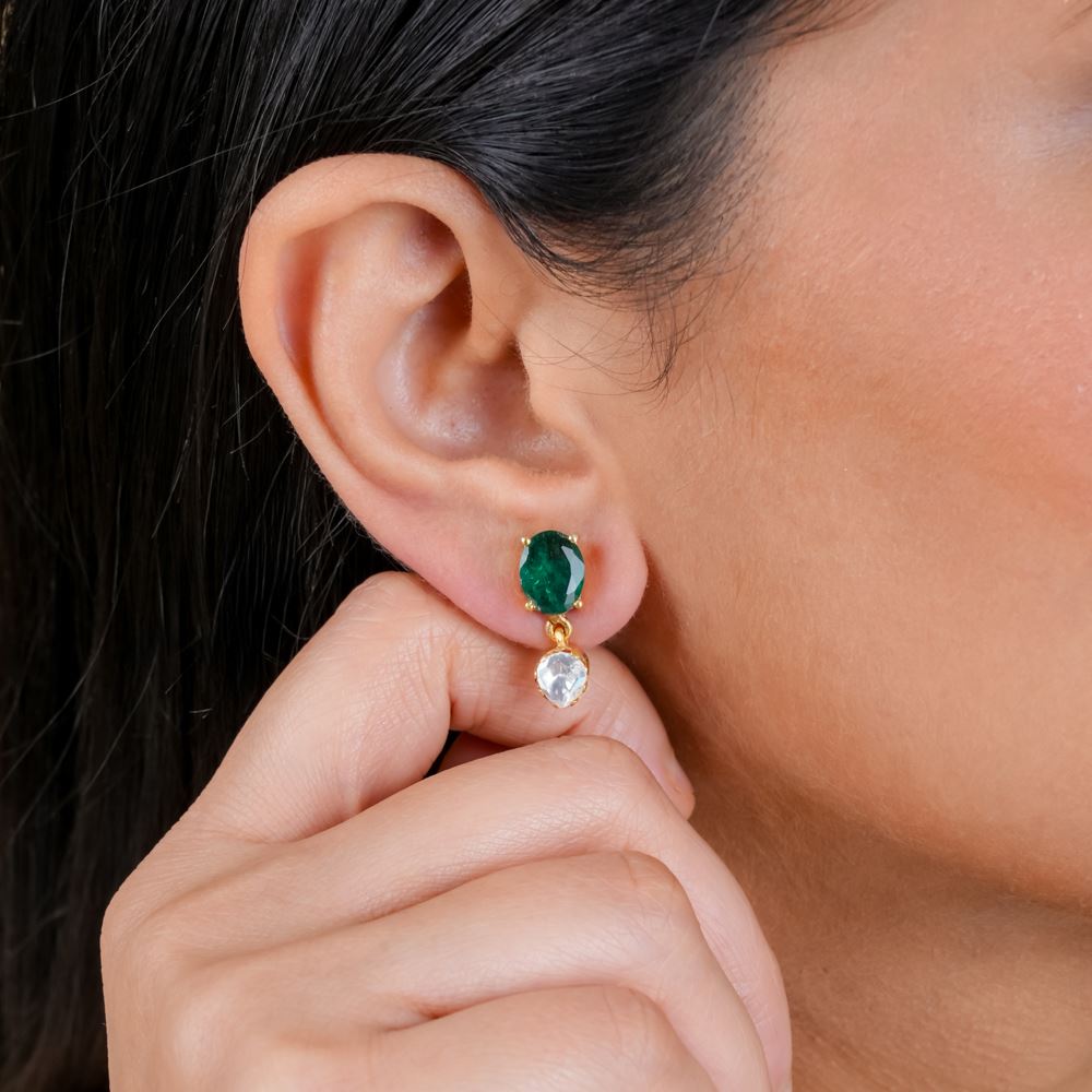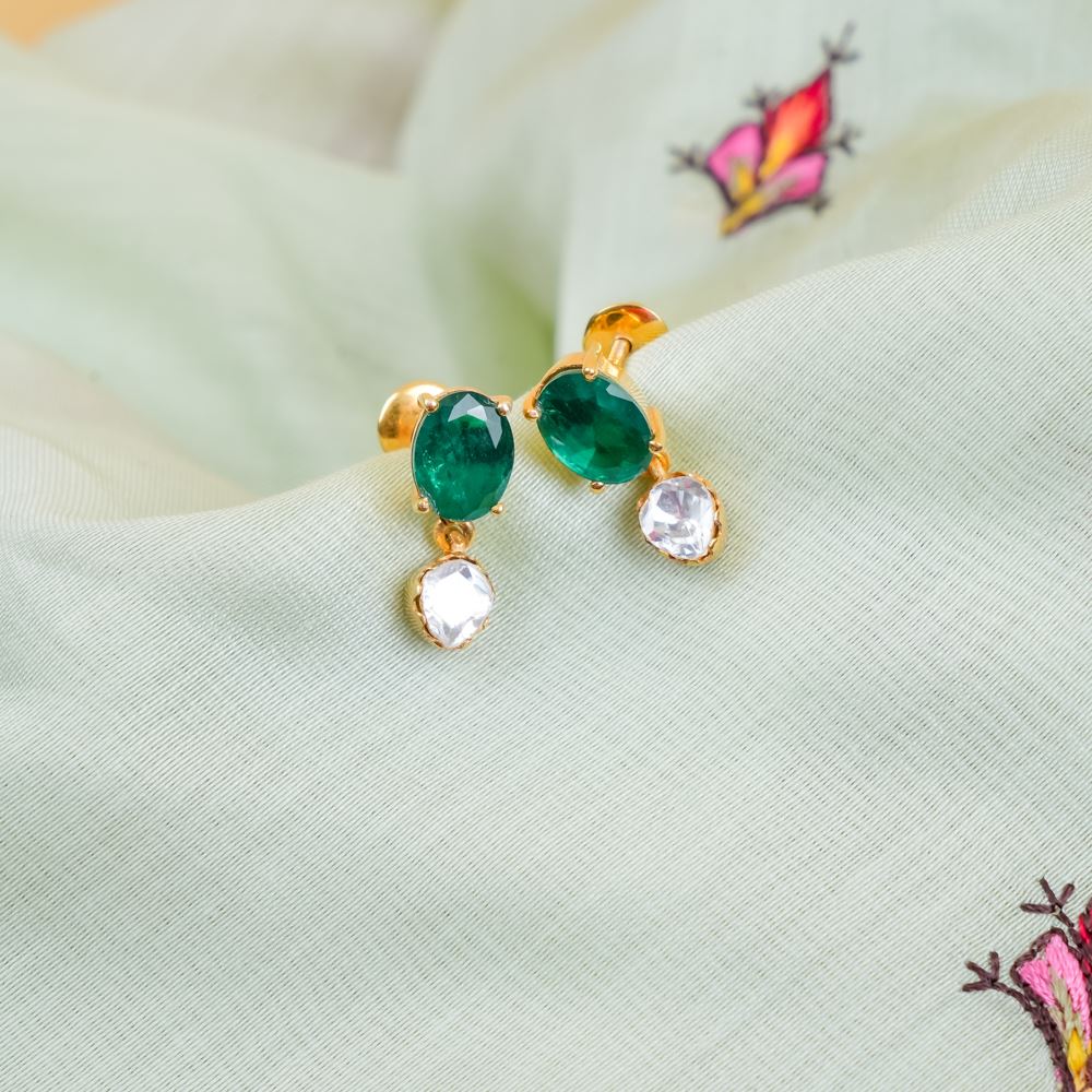 Dainty Hydro Emerald And Moissanite Polki Earrings