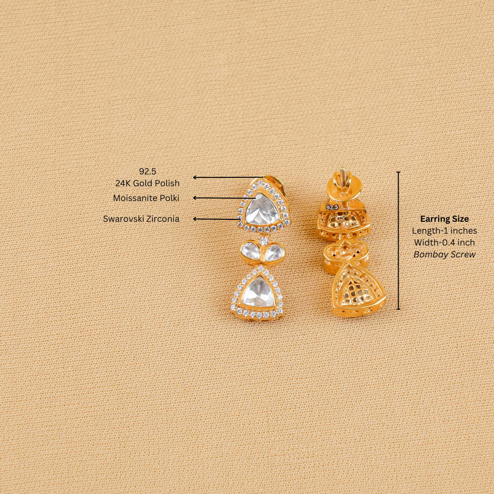 Whether you're dressing up for a special occasion or simply adding a touch of glamour, these earrings are the perfect accessory. Its timeless design featuring moissanite polki and Swarovski zirconia ensures it will remain a cherished piece in your jewellery collection.