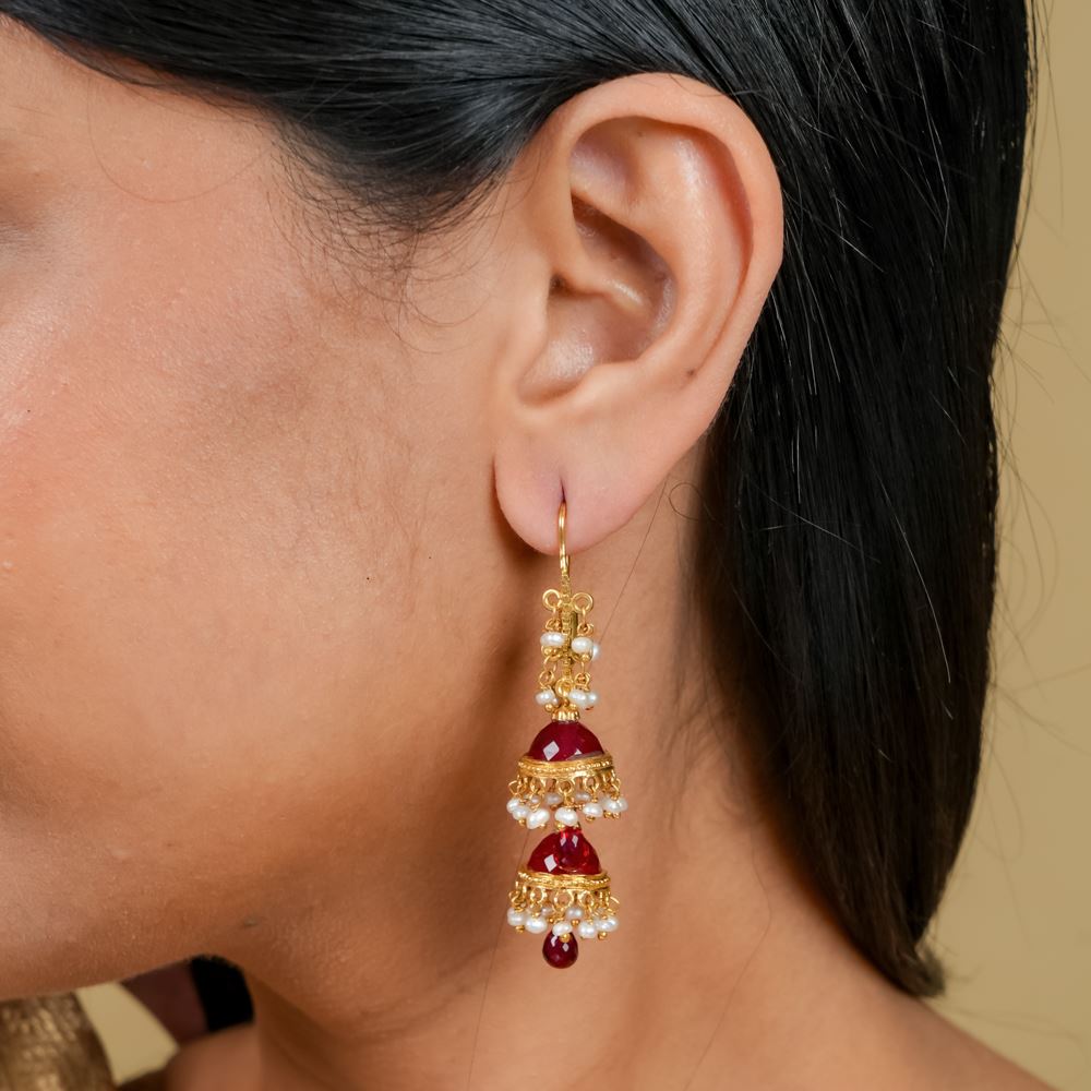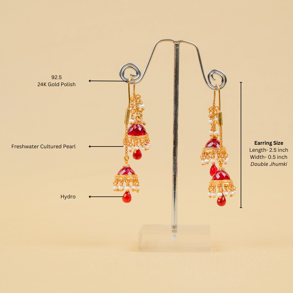 These double Jhumki can't wait to adorn you. Embrace this one-of-a-kind design to pamper yourself once in a while. You can pair this Jhumki with traditional attire or casual attire.