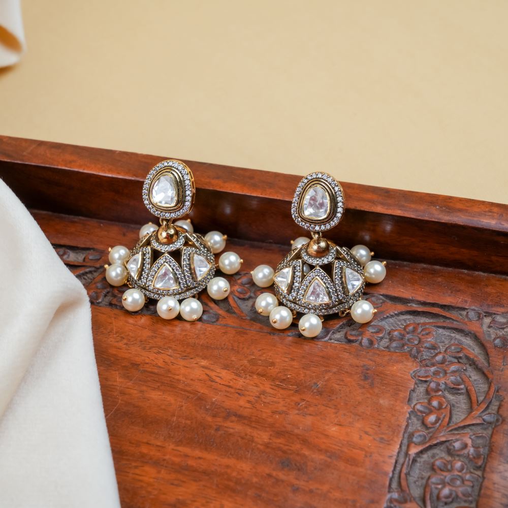 Elegant Moissanite Polki With Swarovski Zirconia Earrings