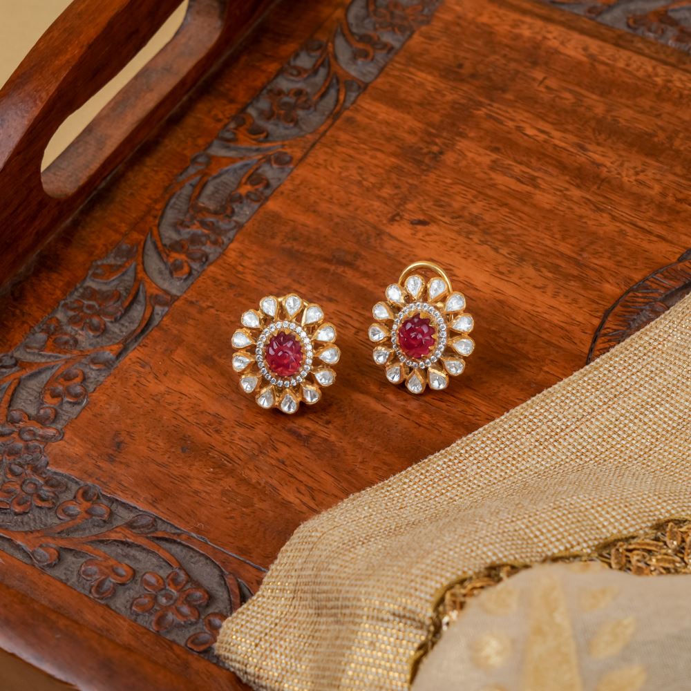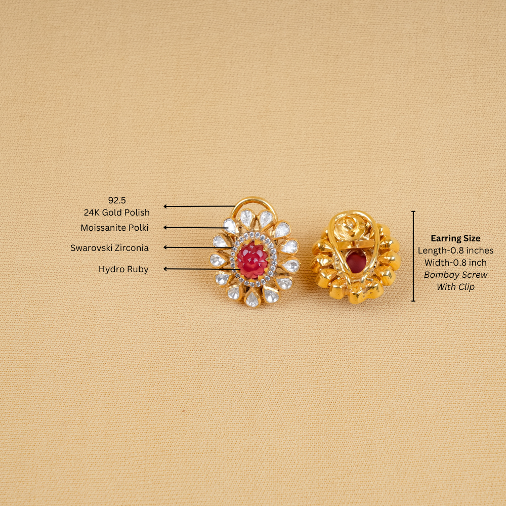Floral Hydro Ruby With Moissanite Polki Studs