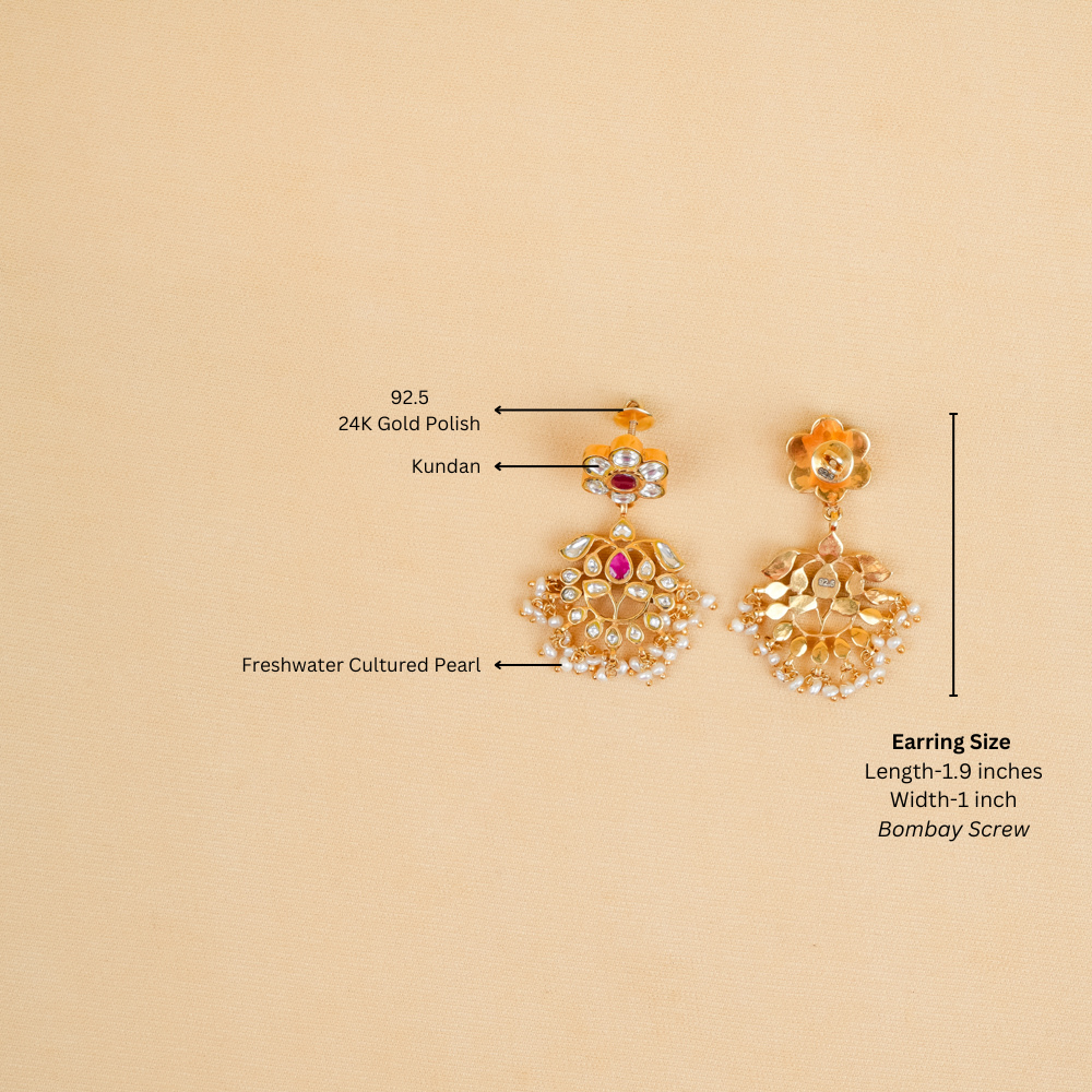 Radiating elegance and charm, these stunning earrings are a masterpiece of Kundan artistry, beautifully set in 92.5 silver. Their enchanting design ensures that they will capture attention and light up any occasion, making you the focal point of admiration wherever you go!