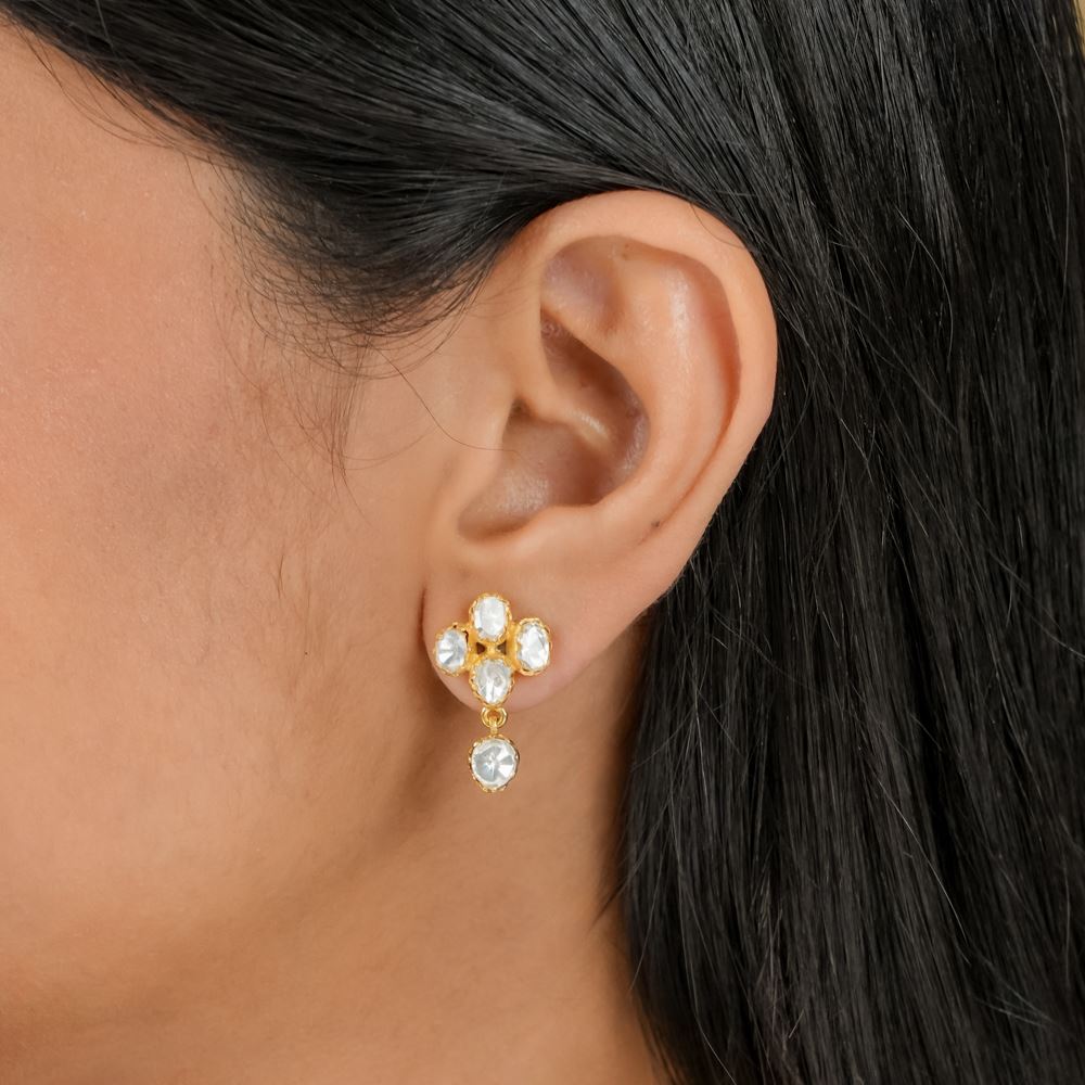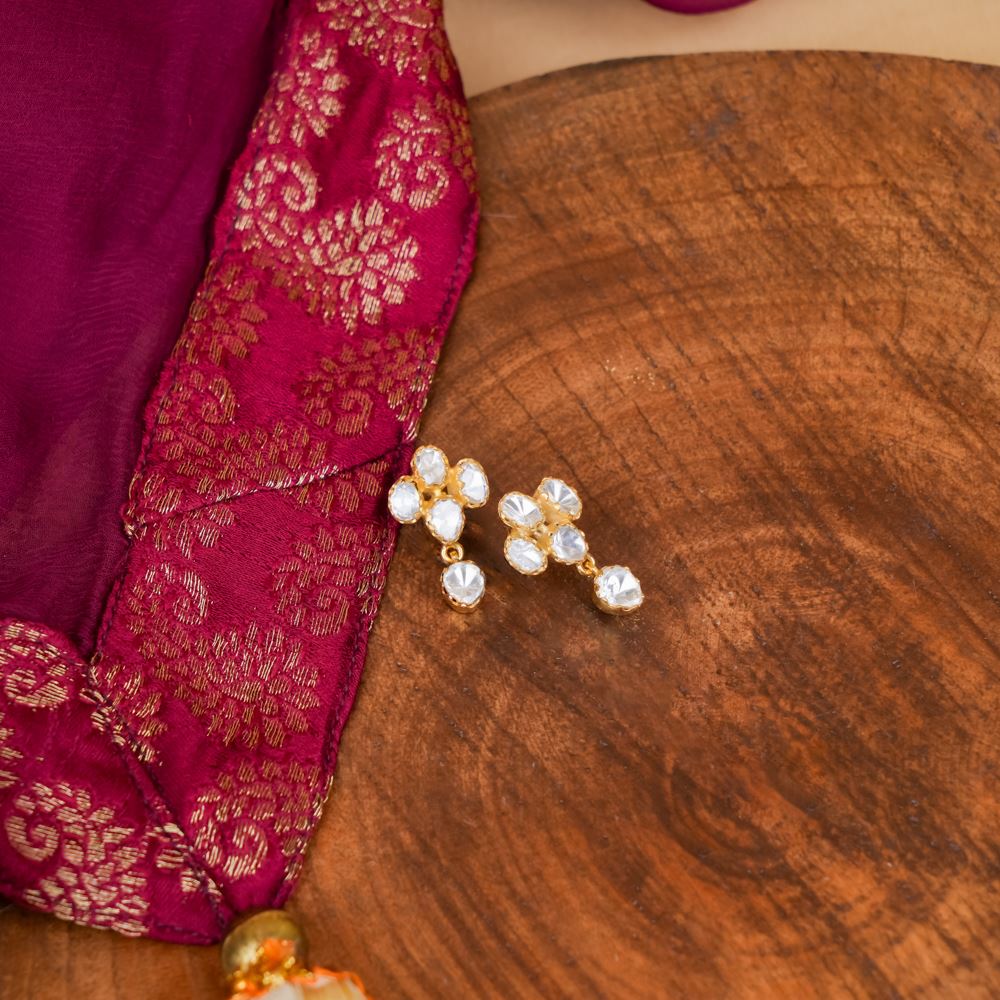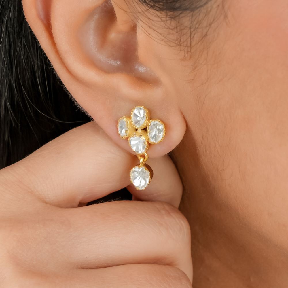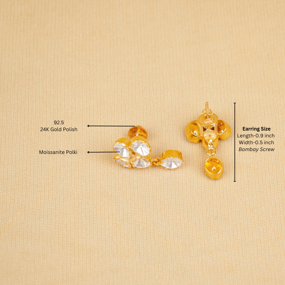 These neat and dainty earrings are classic pieces. You can wear them to brunch, work or beach bonfires. Handcrafted in silver 92.5, it features moissanite polki.