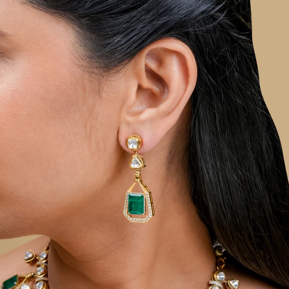 Graceful Moissanite Polki With Hydro Emerald Earrings