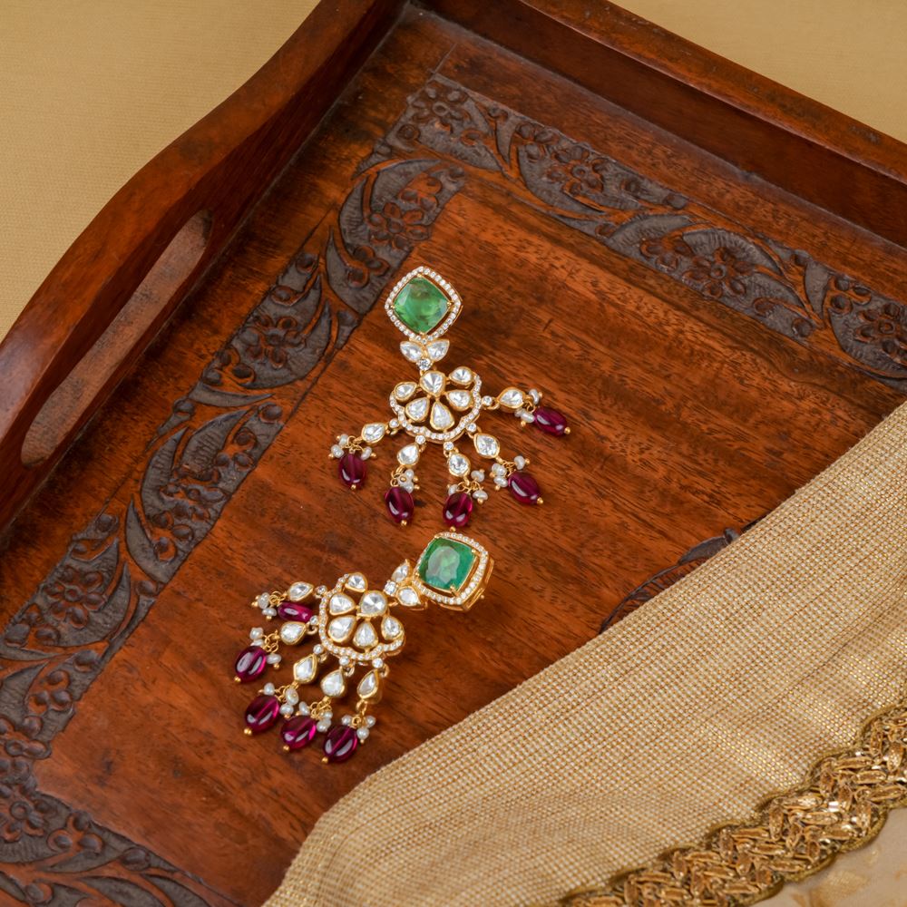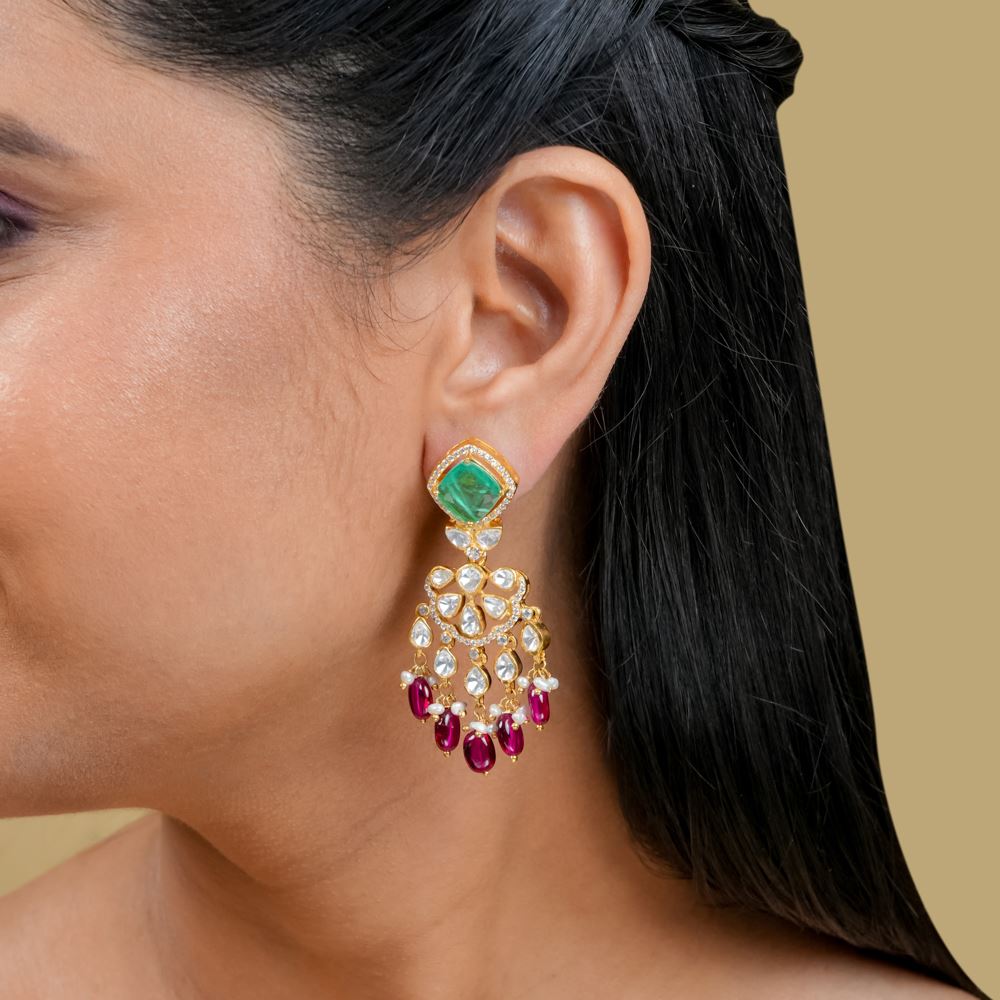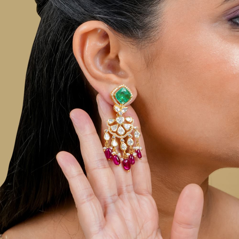Hydro Emerald And Hydro Ruby With Moissanite Polki Earrings