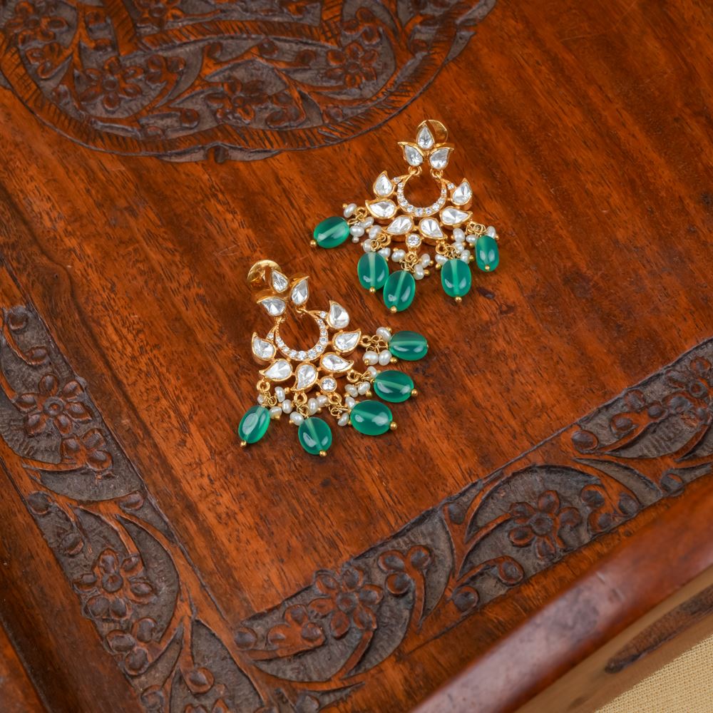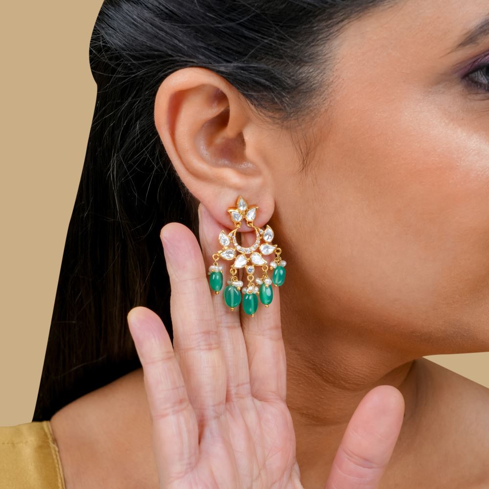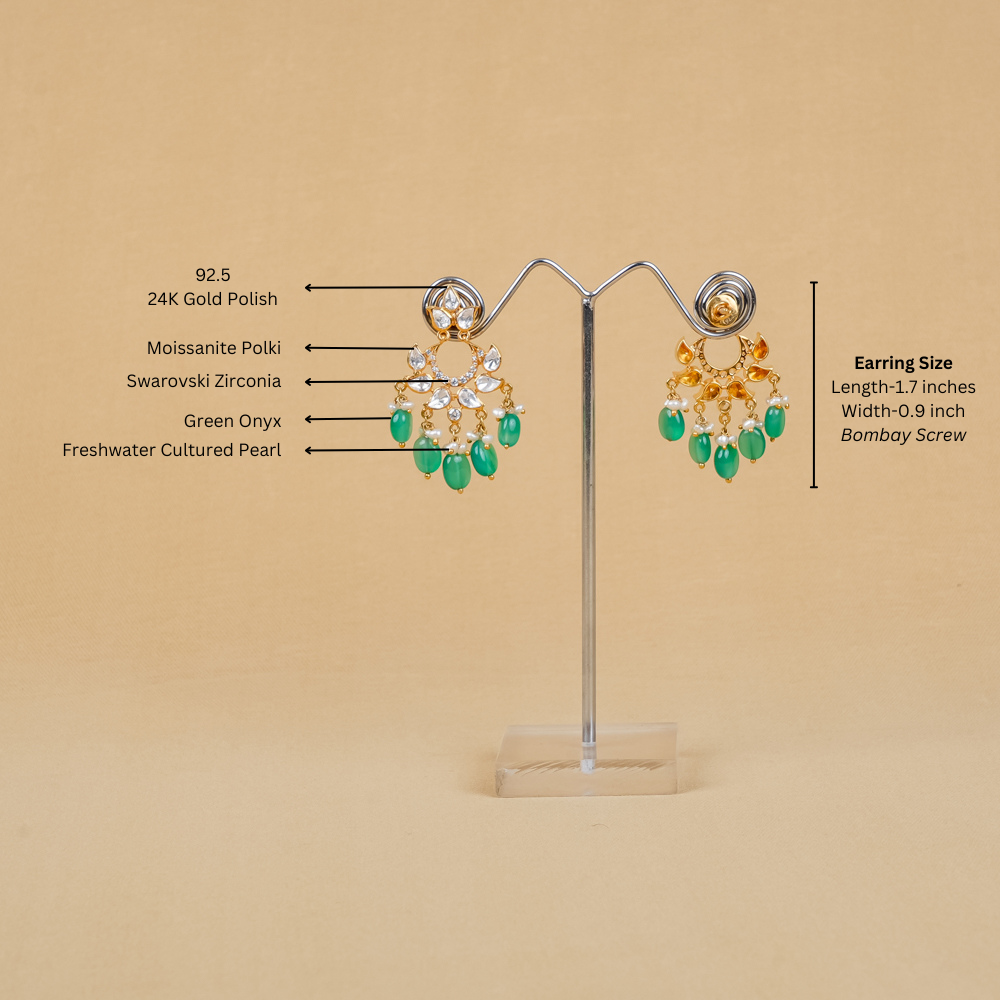 Stones: Green Onyx, Moissanite Polki, Freshwater Cultured Pearl, Swarovski Zirconia