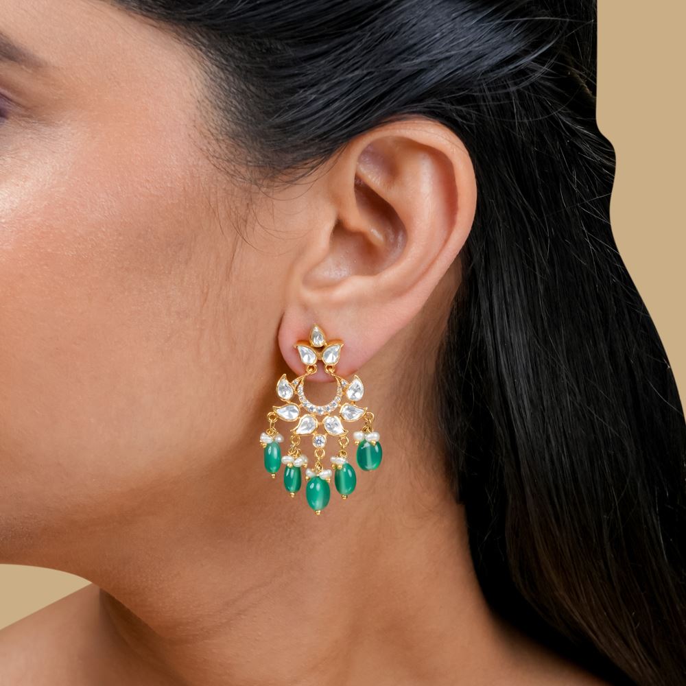Moissanite Polki Chaandbali With Green Onyx Drops