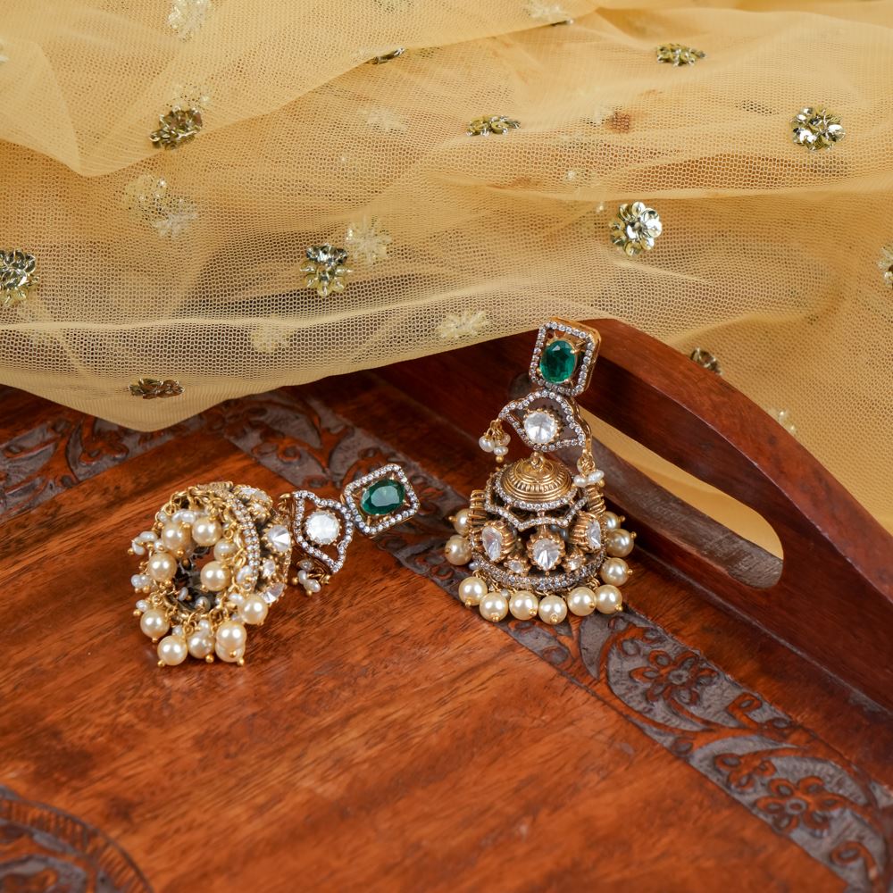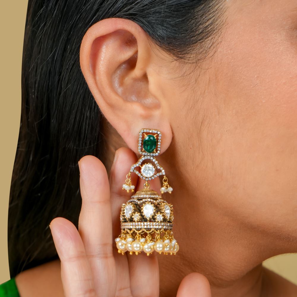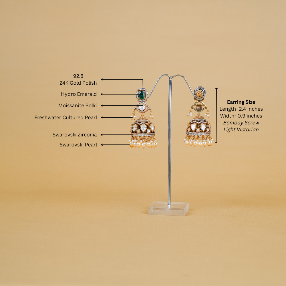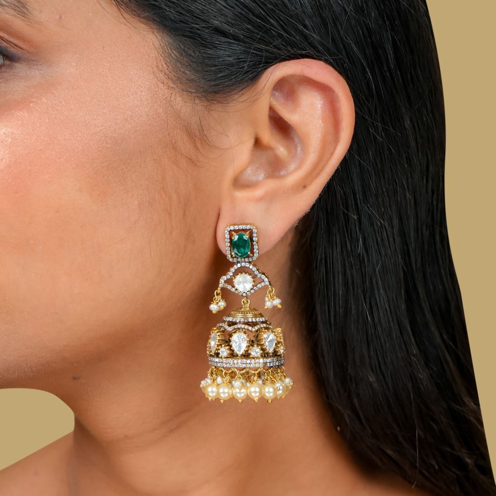 Enhance your style with these 92.5 silver stud with jhumka earrings, perfect for adding a touch of bling and elegance to any outfit. These are a must-have Jhumka for women. Can be paired with Emerald necklace also .