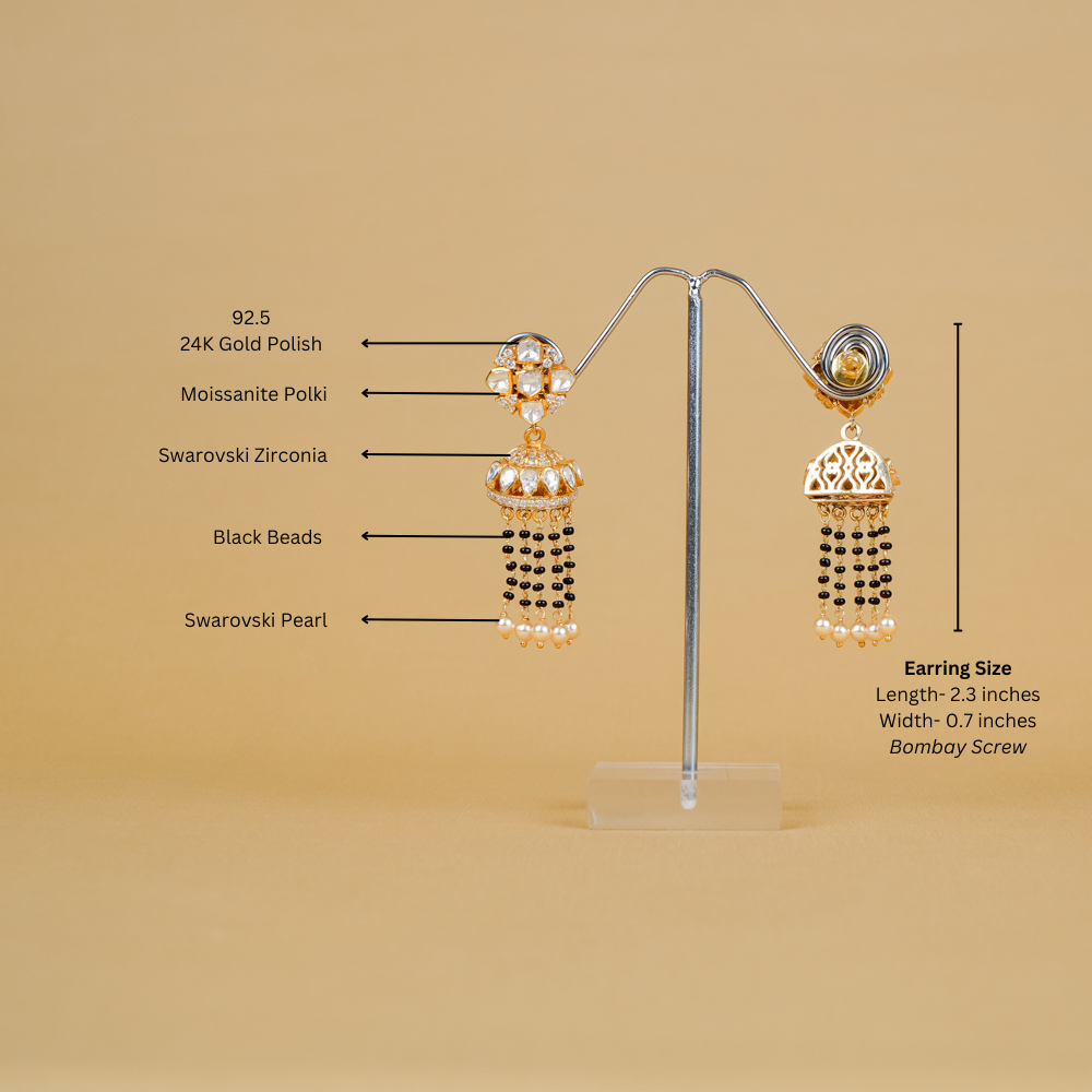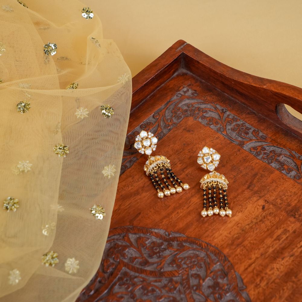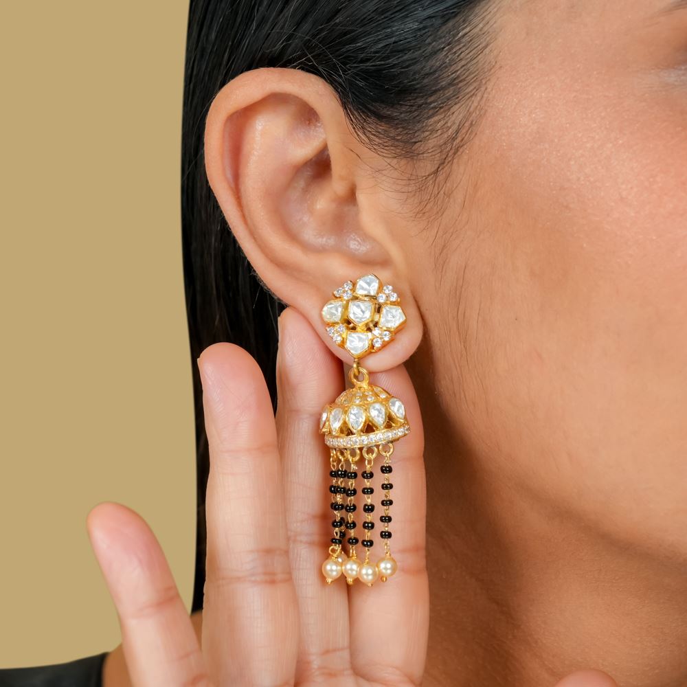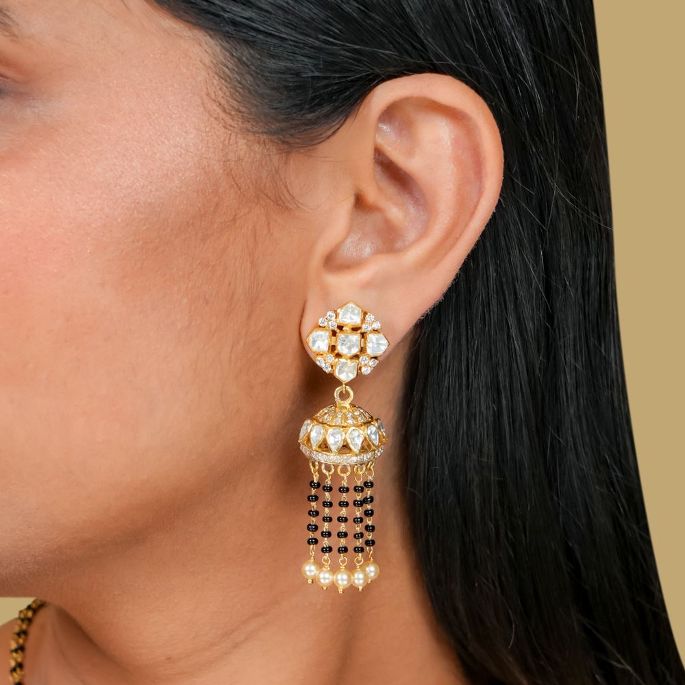 Moissanite Polki Earring With Mangalsutra Beads