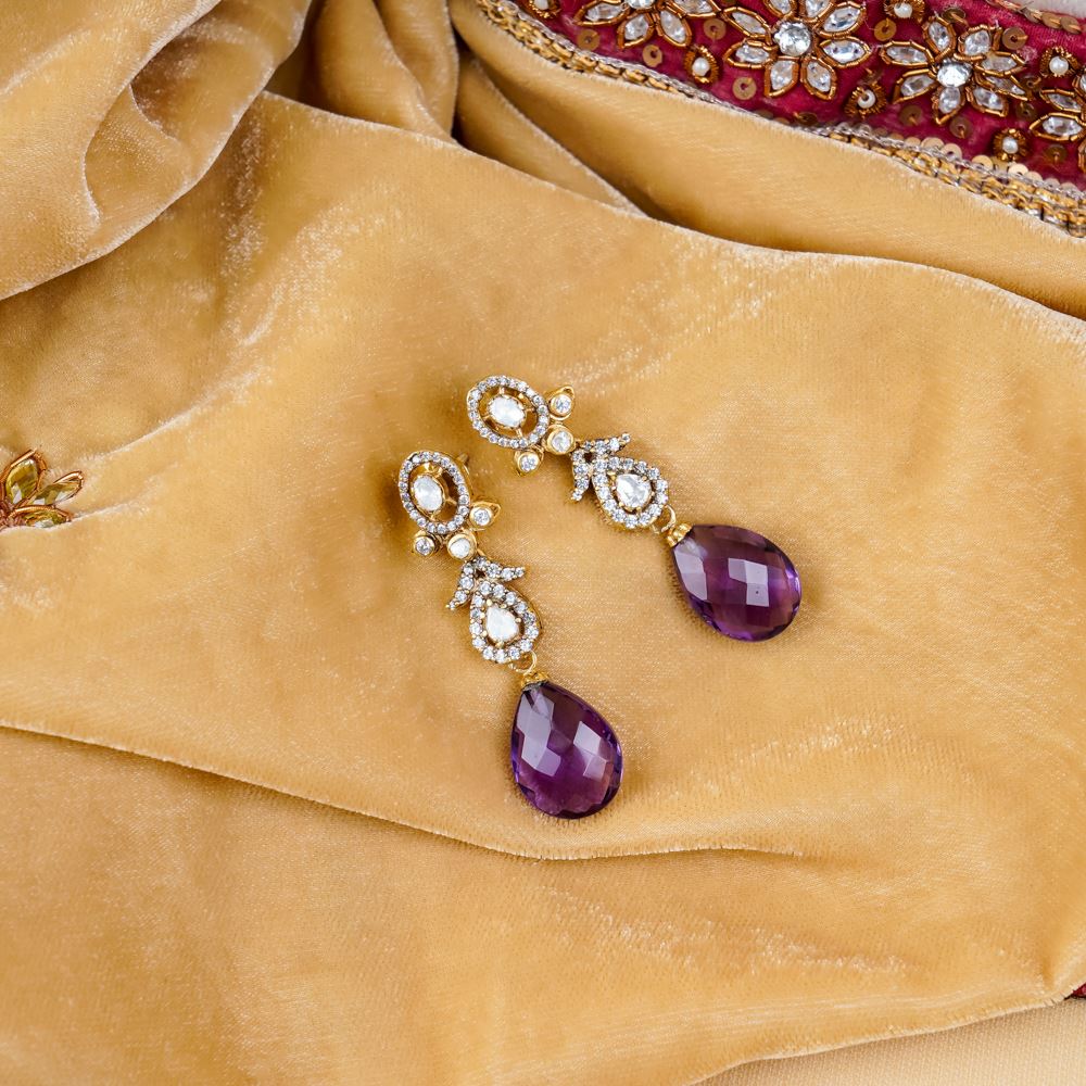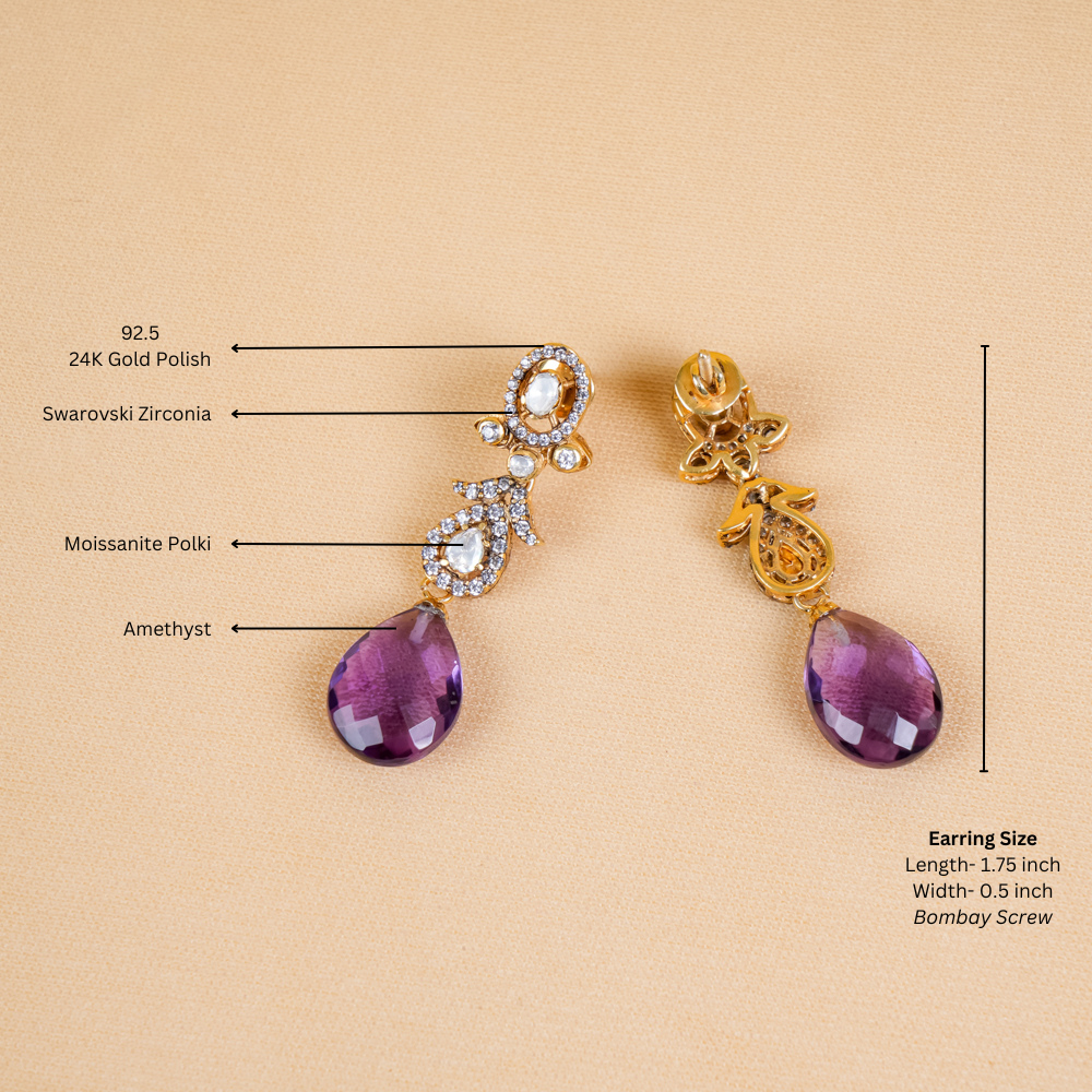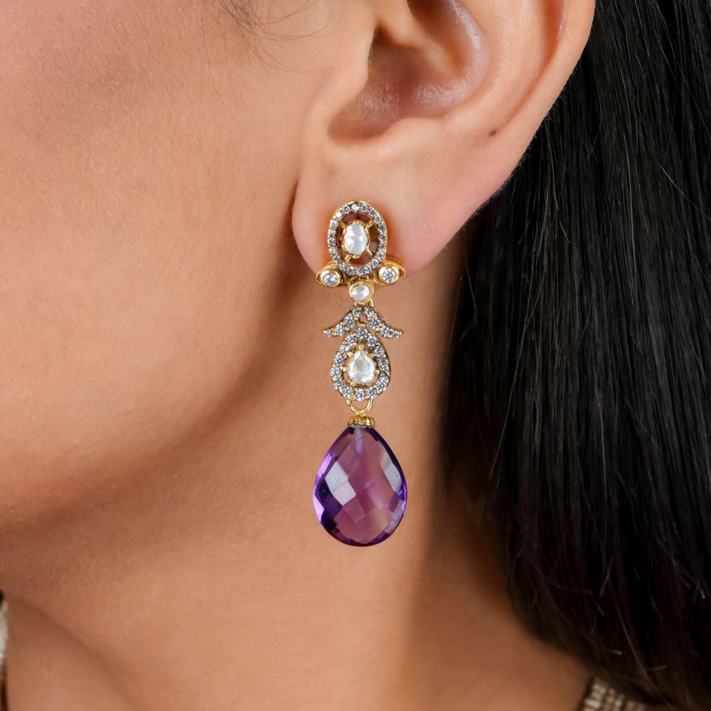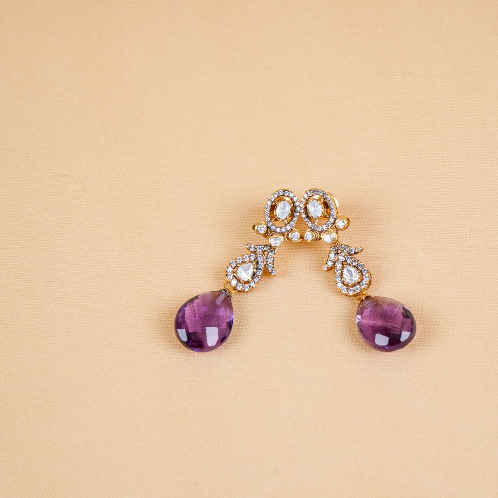 Moissanite Polki With Amethyst Earrings