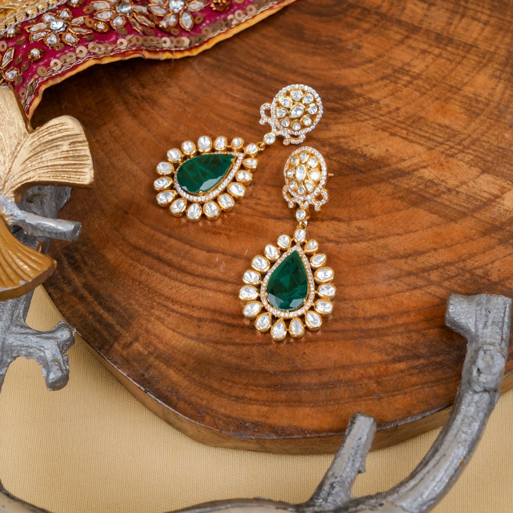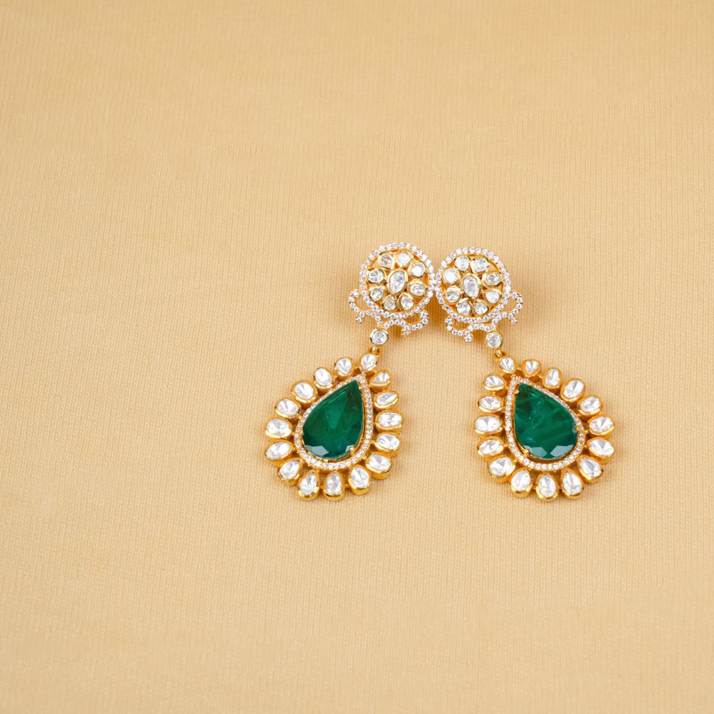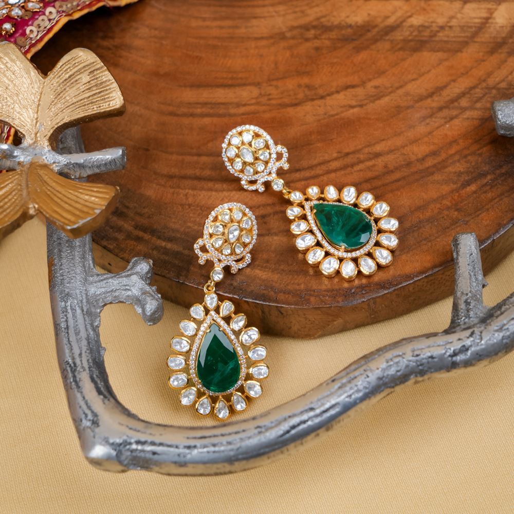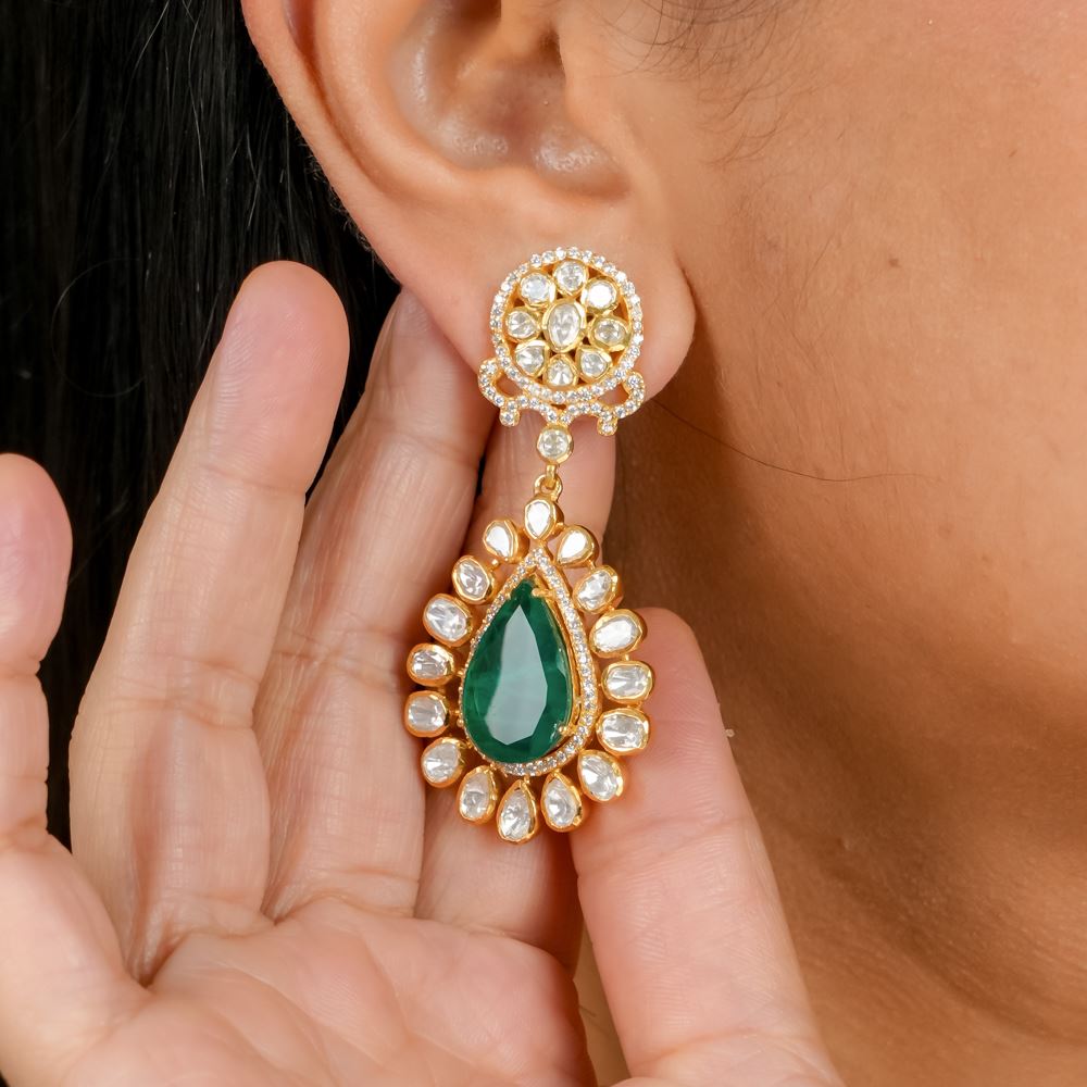 Moissanite Polki With Glistening Hydro Emerald Earrings