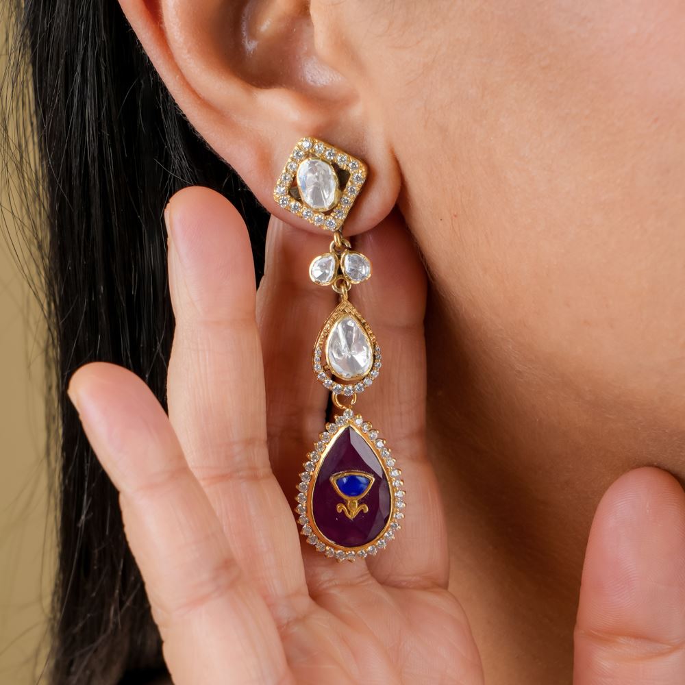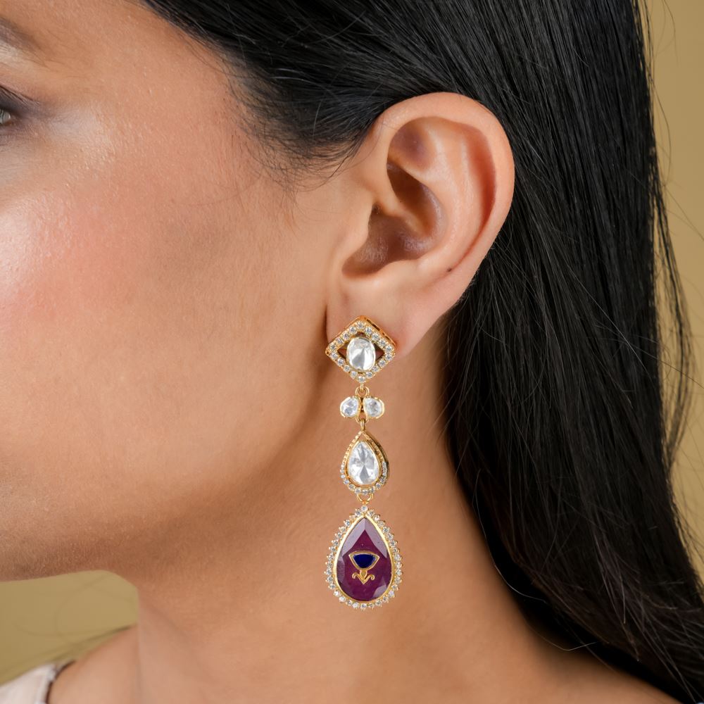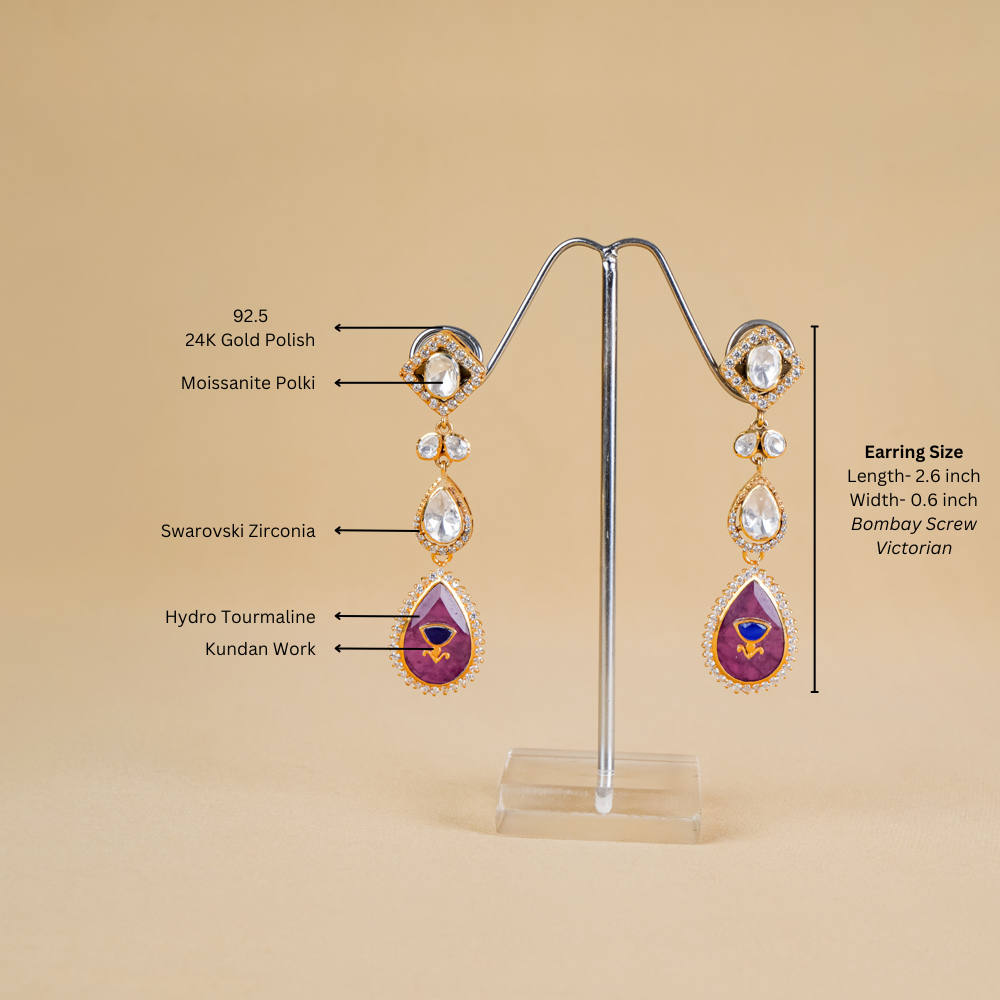 Stones: Hydro Tourmaline, Moissanite polki, Swarovski Zirconia, Kundan Work