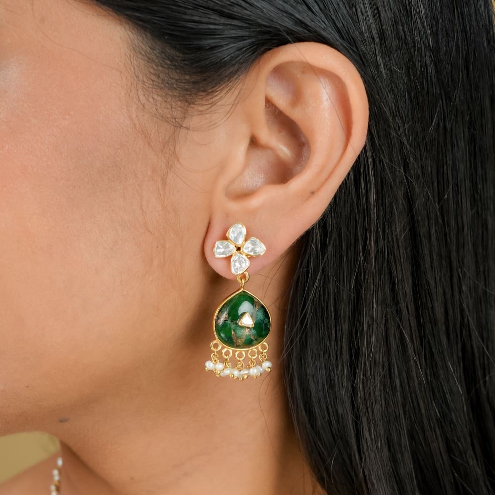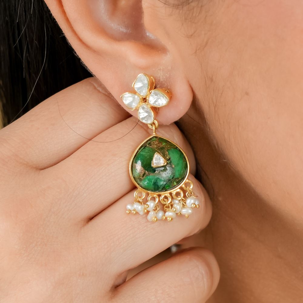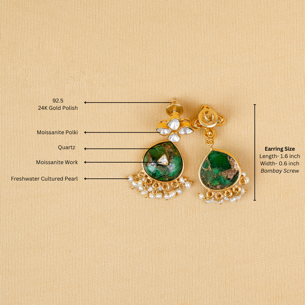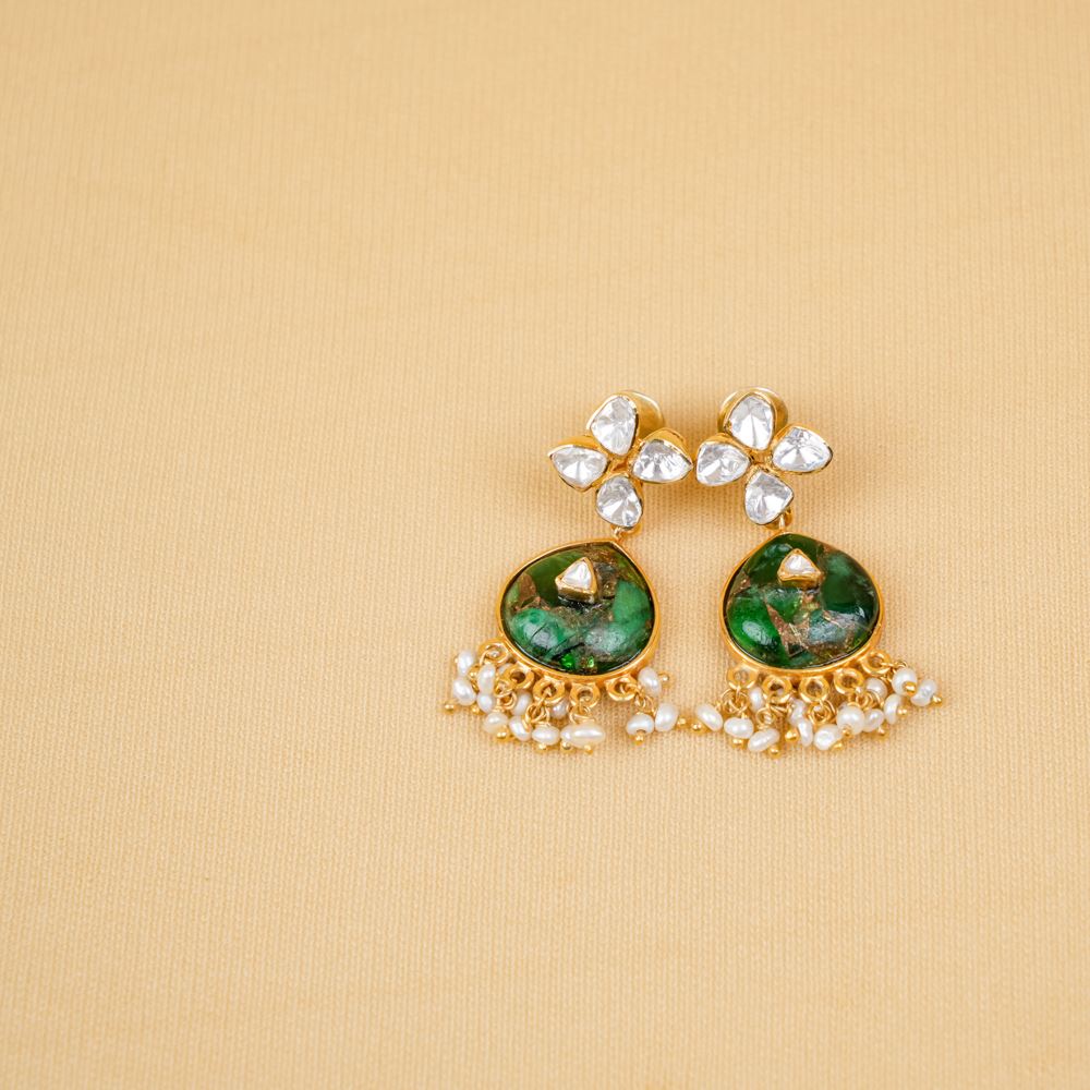 Stones: Quartz, Moissanite Polki, Freshwater Cultured Pearls