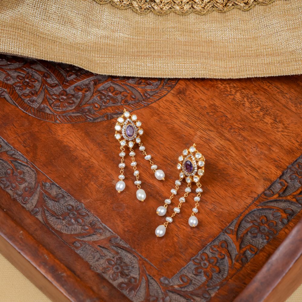 Stones: Natural Amethyst, Moissanite Polki, Swarovski Zirconia, Freshwater Cultured Pearl, Rice Pearl