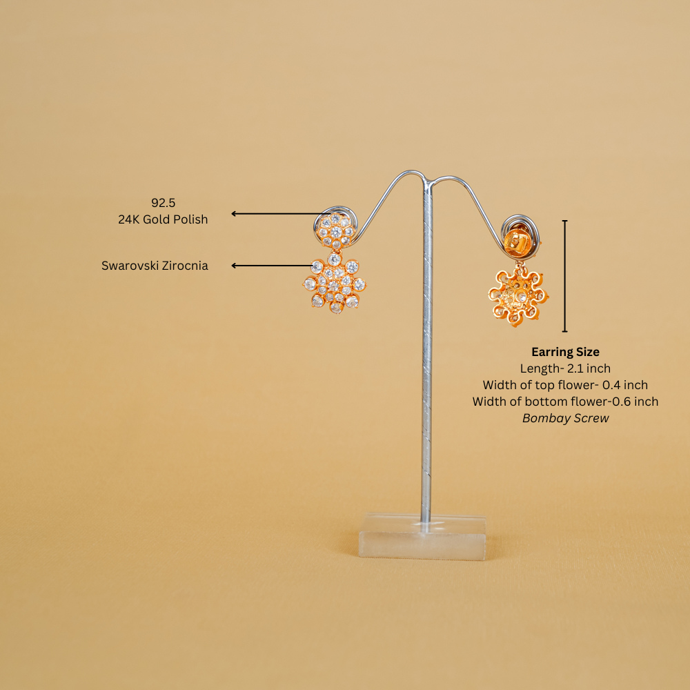 Earring Size: Length-2.1 inches, Width top flower-0.4 inch ,Width bottom flower-0.6 inch